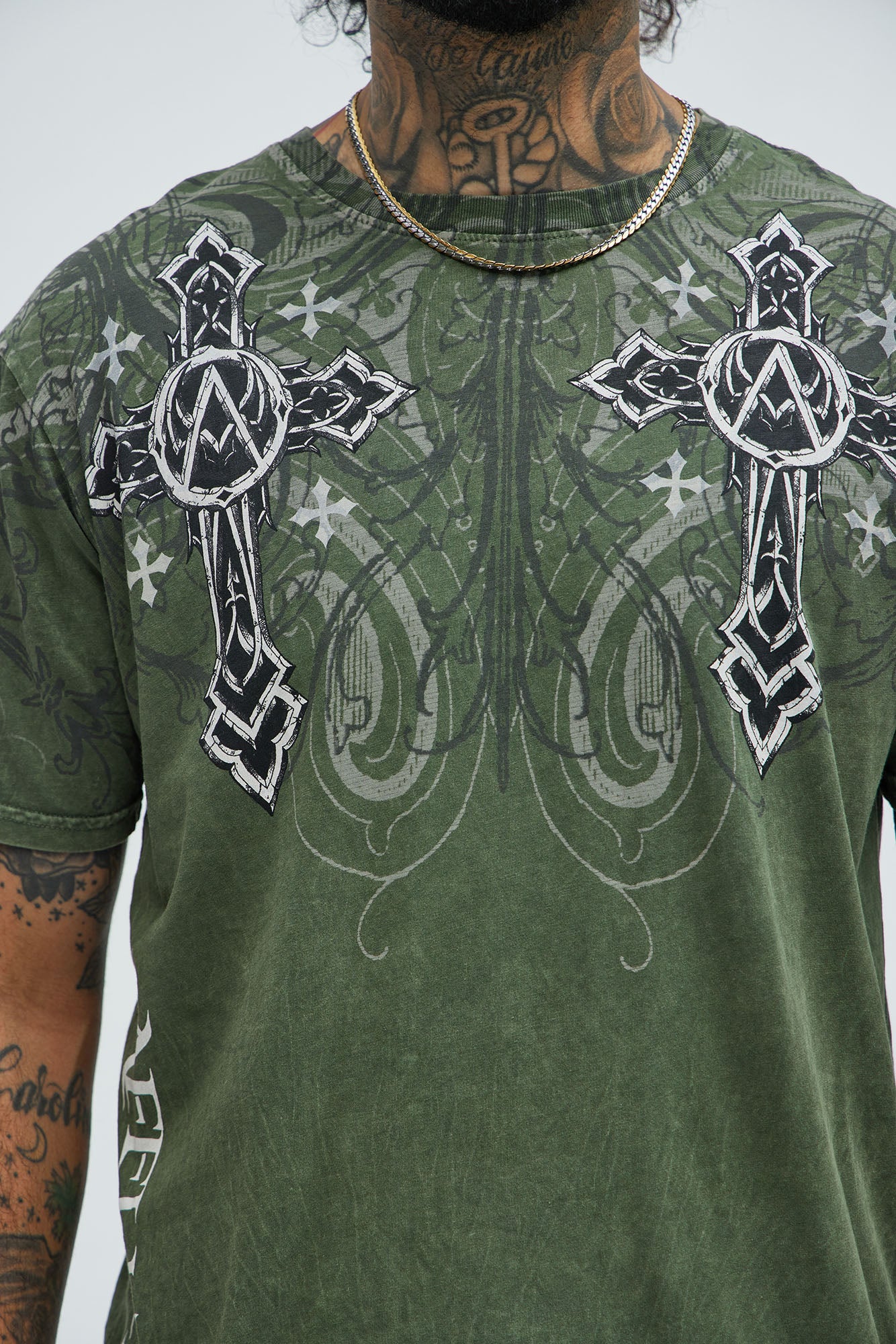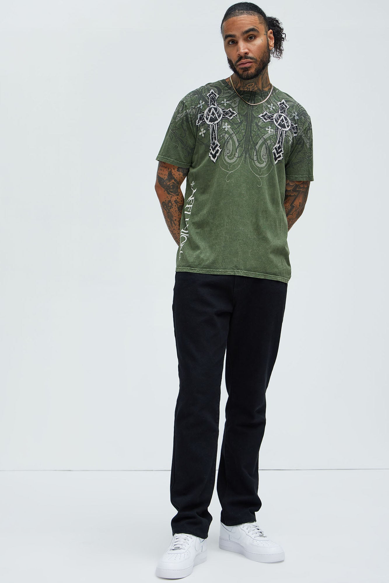 Available In Hunter. Crew Neck Short Sleeve 100% Cotton Disclaimer: Due To The Printing Process A Difference In Saturation May Occur. Each Garment Is Unique. Print Placement Will Vary Disclaimer: Due To The Specialized Distressing & Printing Process, Each Garment Is Unique. Screen Print Imported |