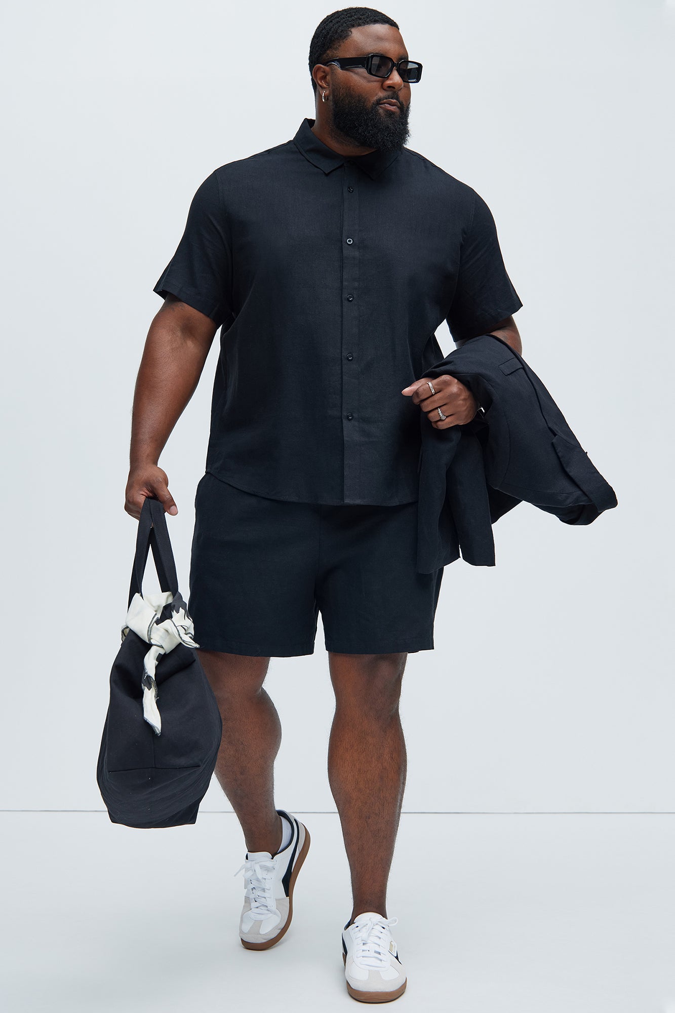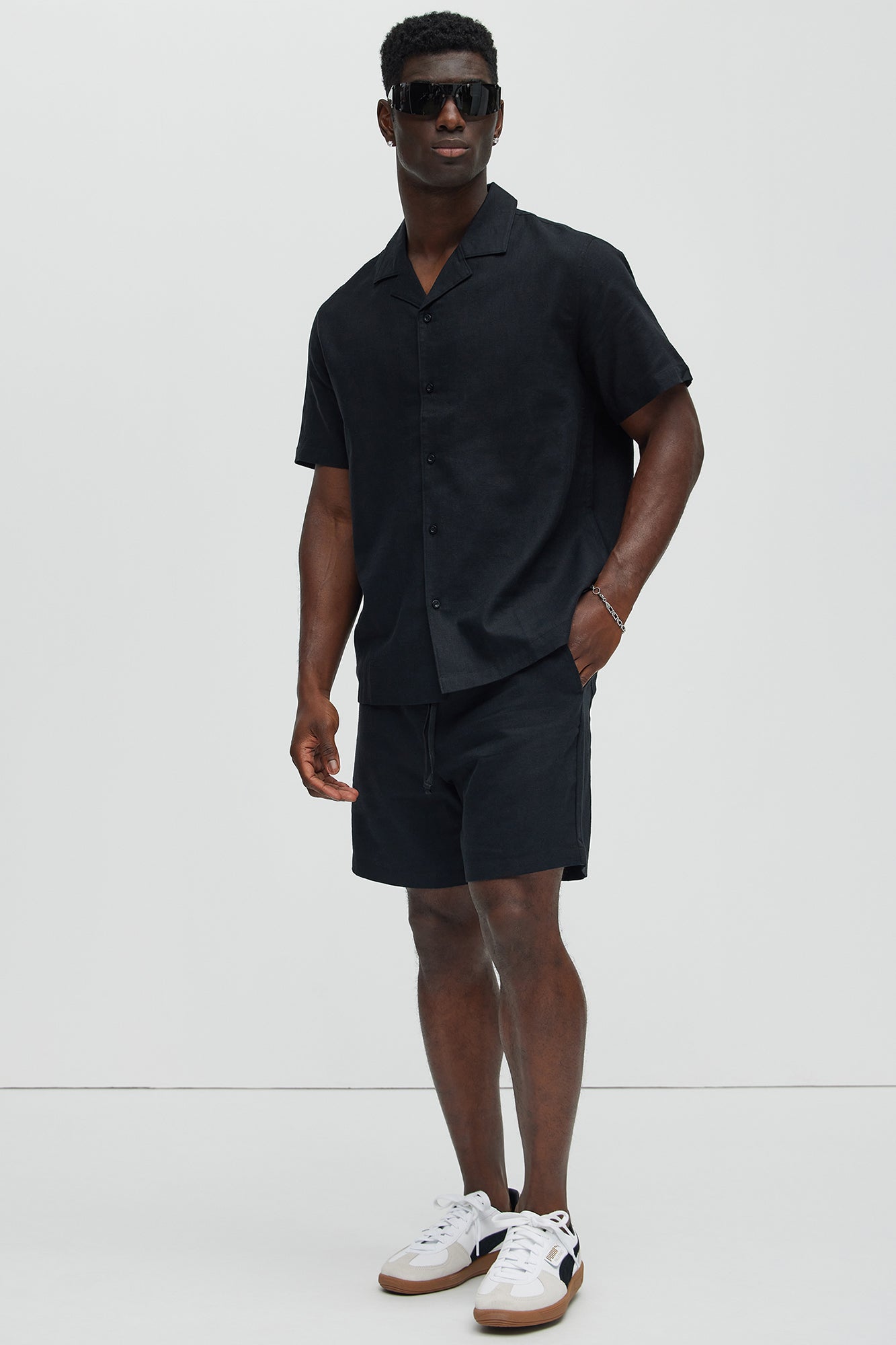 Available In Black. Elastic Waist Drawstring Side Pockets Back Pockets Pair With "Bahamas Linen Chore Jacket" Pair With "Bahamas Linen Shirt" Pair With "Bahamas Linen Classic Button Up Shirt" Pair With "Bahamas Linen Cuban Shirt" Shell: 55% Linen 45% Cotton Lining: 100% Polyester Imported |