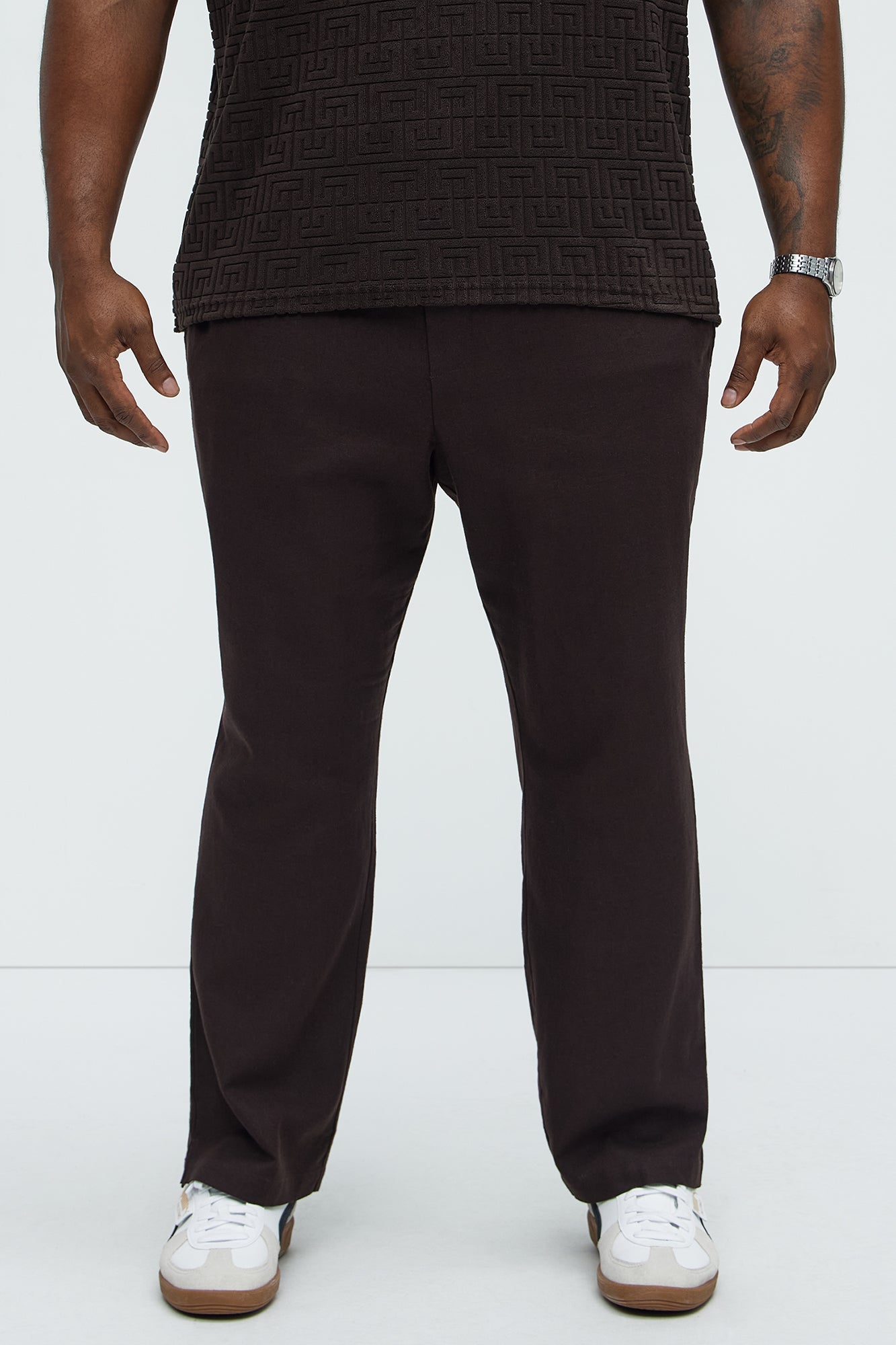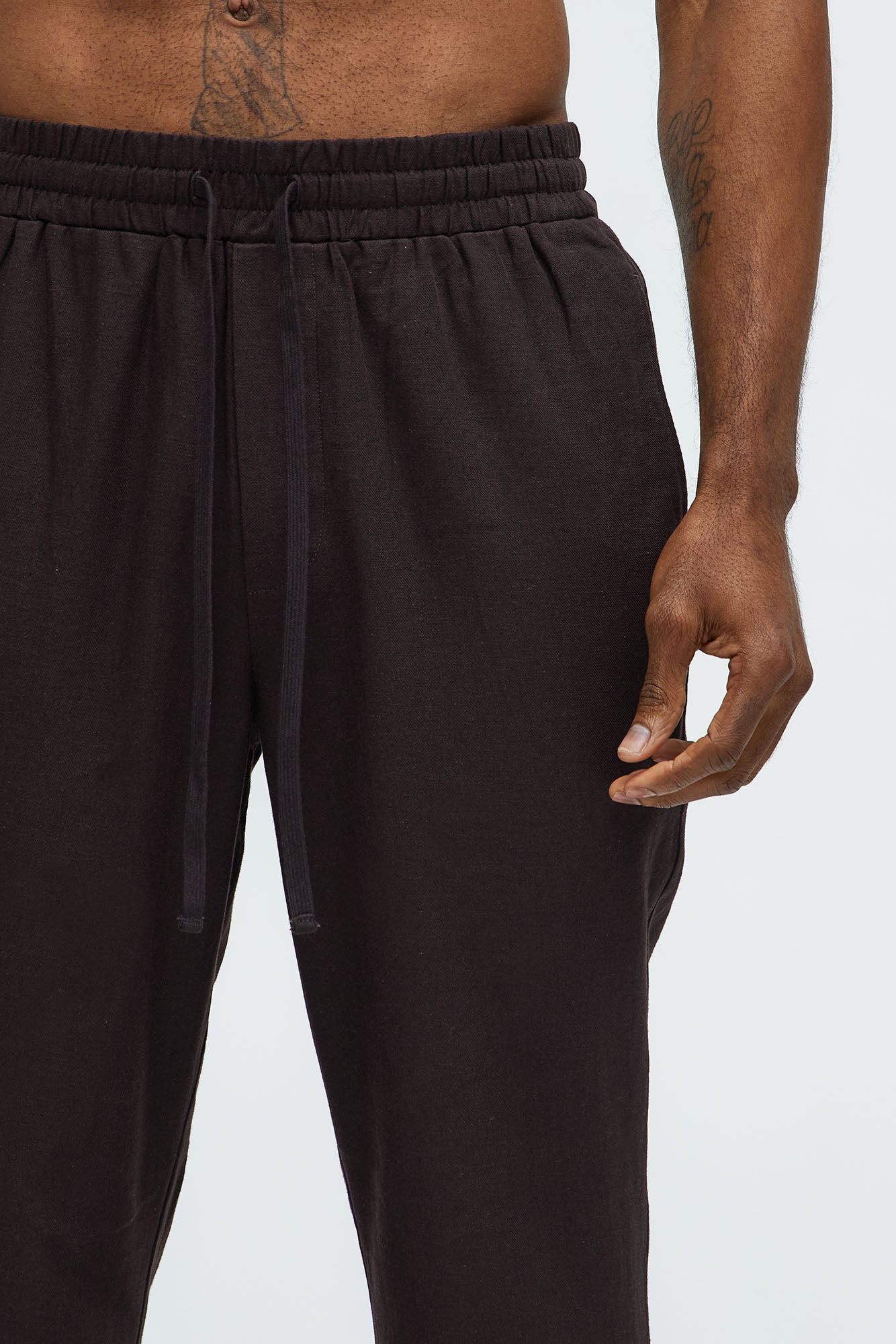 Available In Brown. Slim Fit Elastic Waist Drawstring Side Hand Pockets Shell: 55% Linen, 45% Cotton Lining: 100% Polyester Imported |