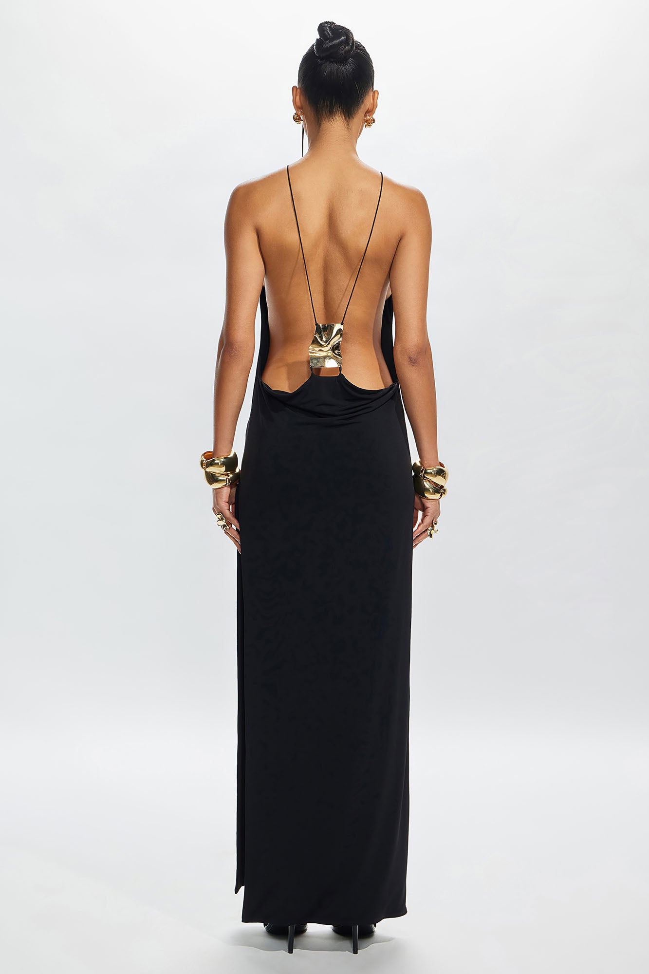 Available In Black And Cream. Maxi Dress High Neck Backless Hardware Detail Stretch 92% Polyester , 8% Spandex Imported |