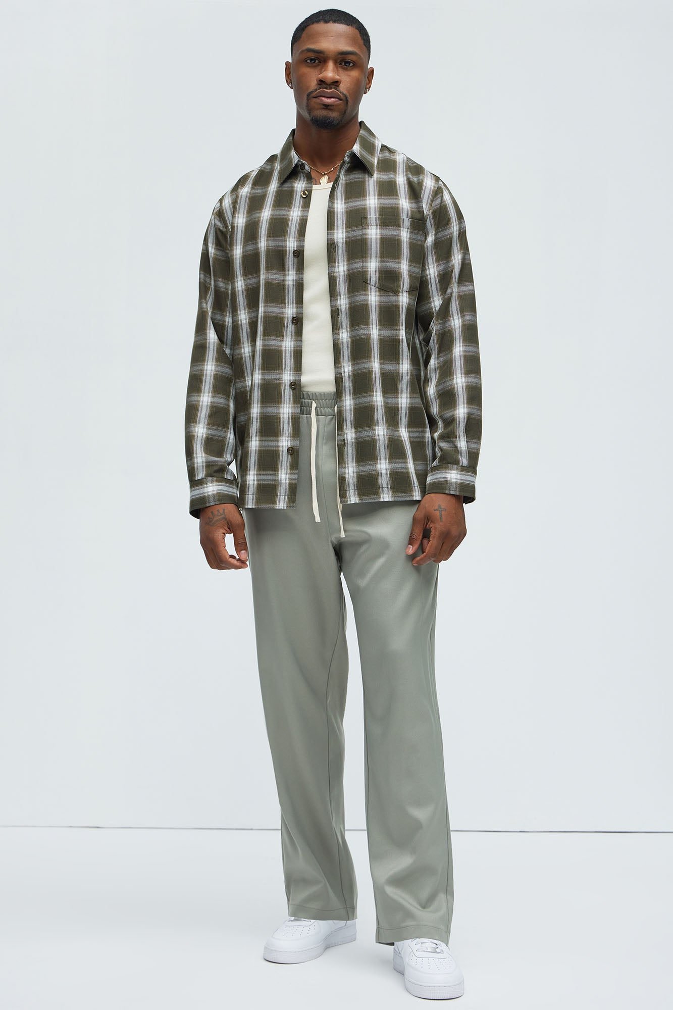 Available In Olive/combo. Fold Down Collar ZFront Button Closure Chest Pocket Long Sleeve Shell: 65% Polyester 35% Rayon Disclaimer: Plaid Placement Will Vary. Imported |