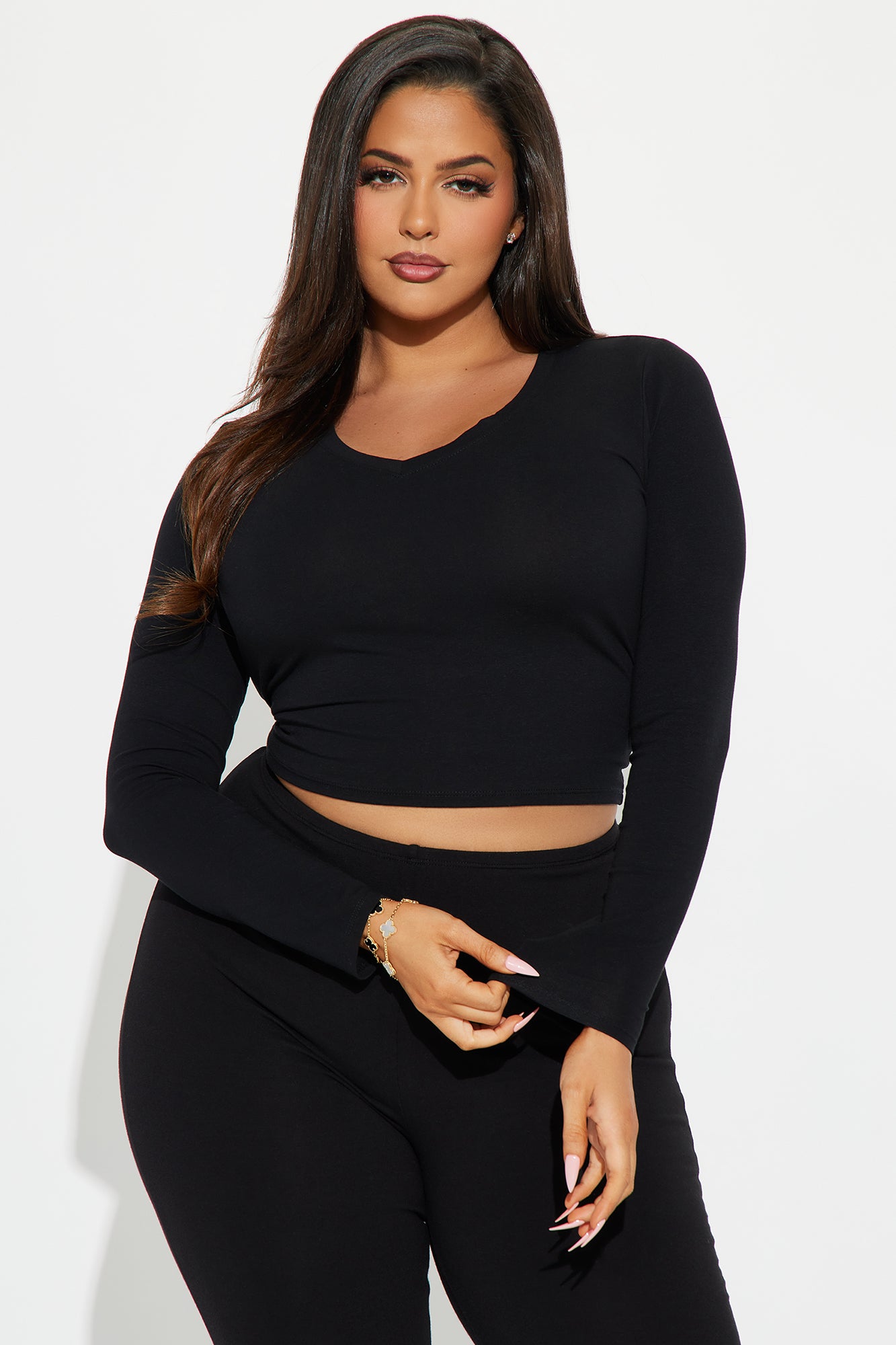 Available In Black, Burgundy, Gold, Heather Grey, Olive, Rose, And White. Cropped Fit Cotton/Spandex Fabric V Neck Long Sleeve 95% Cotton 5% Spandex Imported |