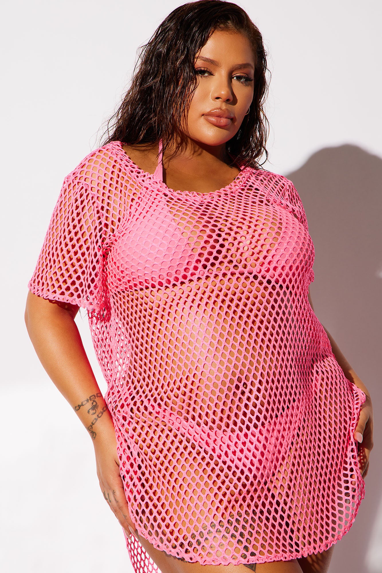 Available In Hot Pink. Recommended For Pool Side Use - Not Water Resistant This Versatile Piece Is The Perfect Swim Cover-Up Scoop Neck Short Sleeve Elongated Mesh Top Stretch Mesh Fabric Final Sale 100% Polyester Imported |