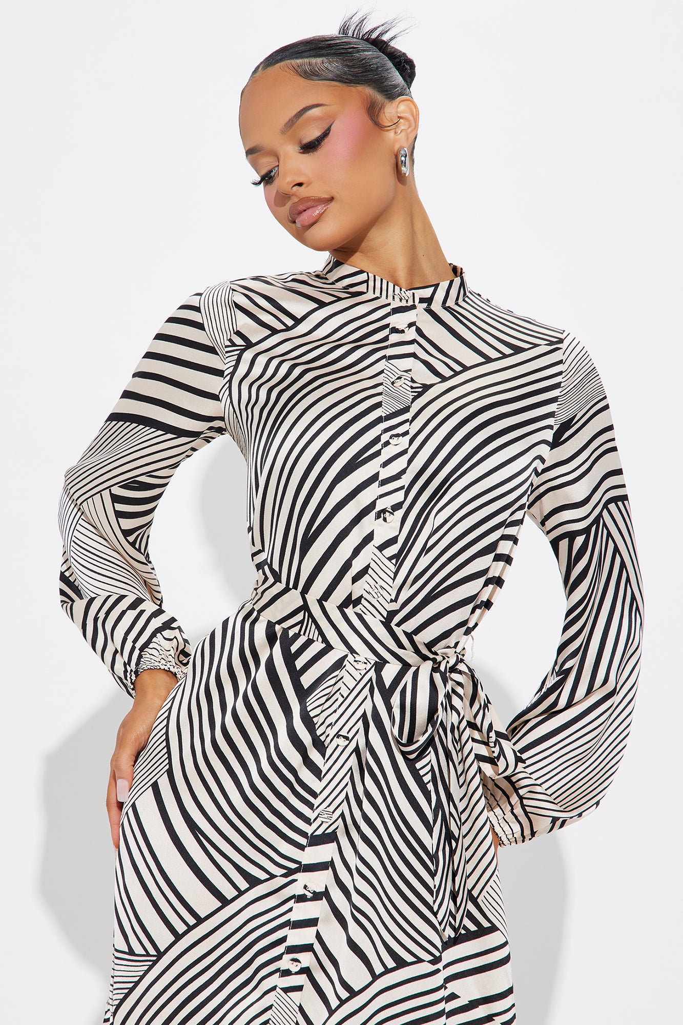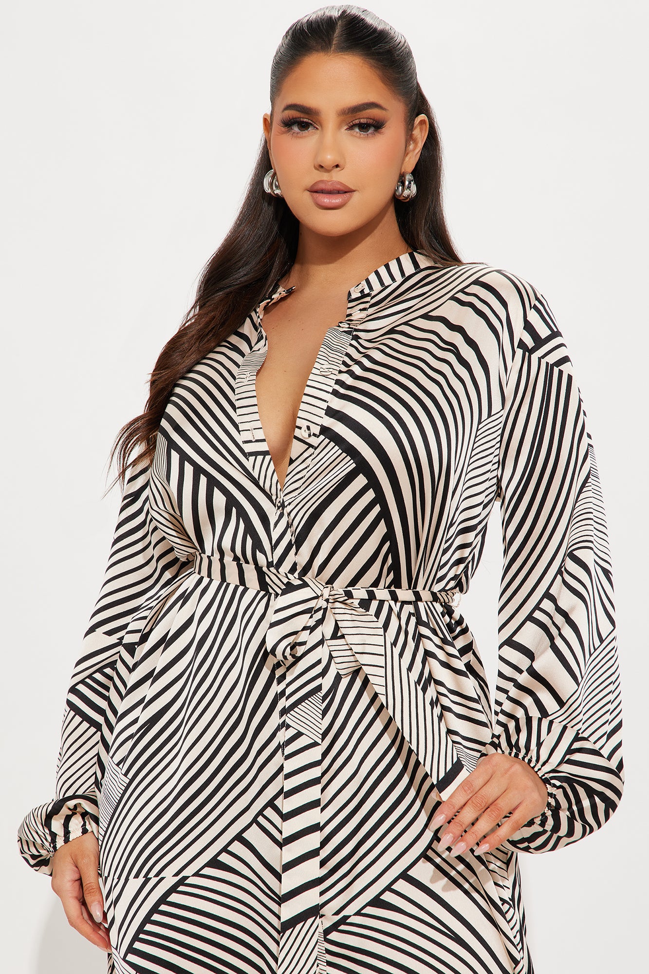 | Available In Cream/combo. Satin Maxi Shirt Dress Long Balloon Sleeves Button Front Tie Waist Pockets No Stretch Disclaimer: Pattern Placement May Vary. Shell: 100% Polyester Imported |