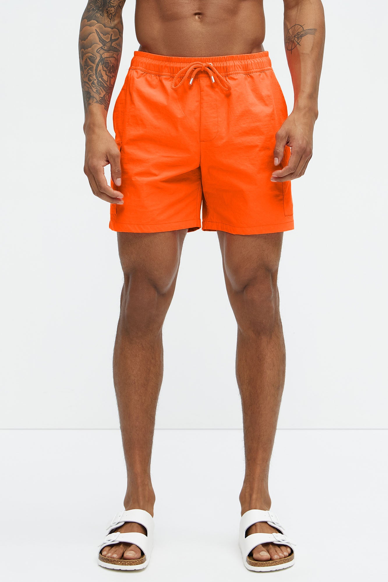 Available In Orange. 7" Inseam Elastic Waist Drawstring Mesh Lined Side Hand Pockets Side Cargo Pockets Shell: 92% Nylon, 8% Spandex Lining: 100% Nylon Final Sale Imported |