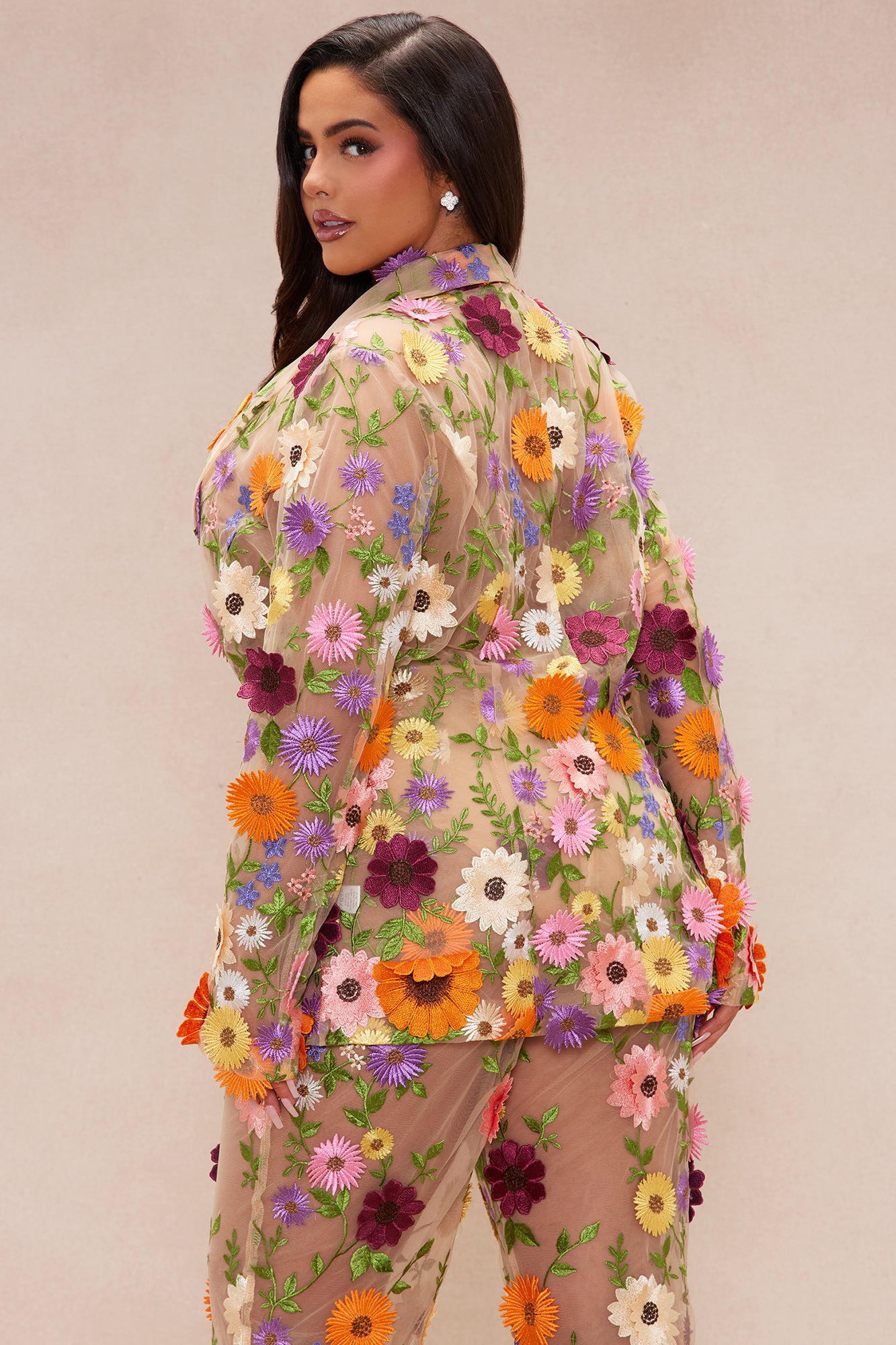 Available In Nude/combo. Embroidered Jacket Collar Lapel Long Sleeve Floral Applique Mesh Lining No Stretch Disclaimer : Embroidery Placement Will Vary Shell: 100% Polyester Lining: 100% Polyester Imported  |