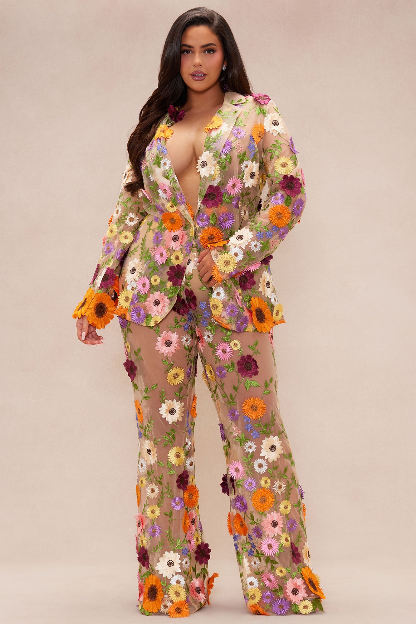 Available In Nude/combo. Embroidered Pant Mid Rise Hidden Back Zipper Mesh Lined Detachable Panty No Stretch Flare Leg Disclaimer : Embroidery Placement Will Vary Shell :100% Polyester Lining :100% Polyester Underwear: 95% Polyester 5% Spandex Imported |