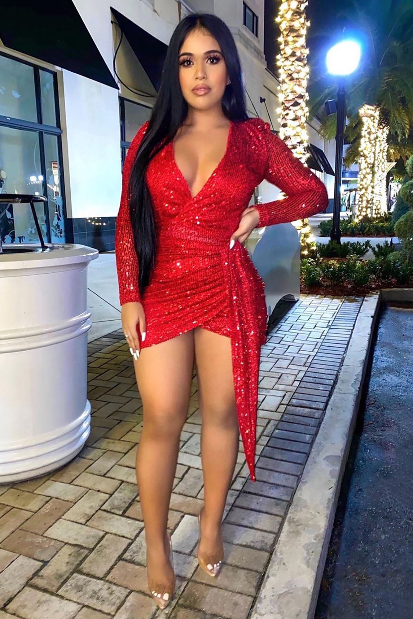 Available In White/Silver, Red And Purple Long Sleeve Deep V Neck Hidden Back Zipper Ruched Detailing Full Lining Shell 95% Poleyster 5% Spandex Lining 100% Polyester Imported |
