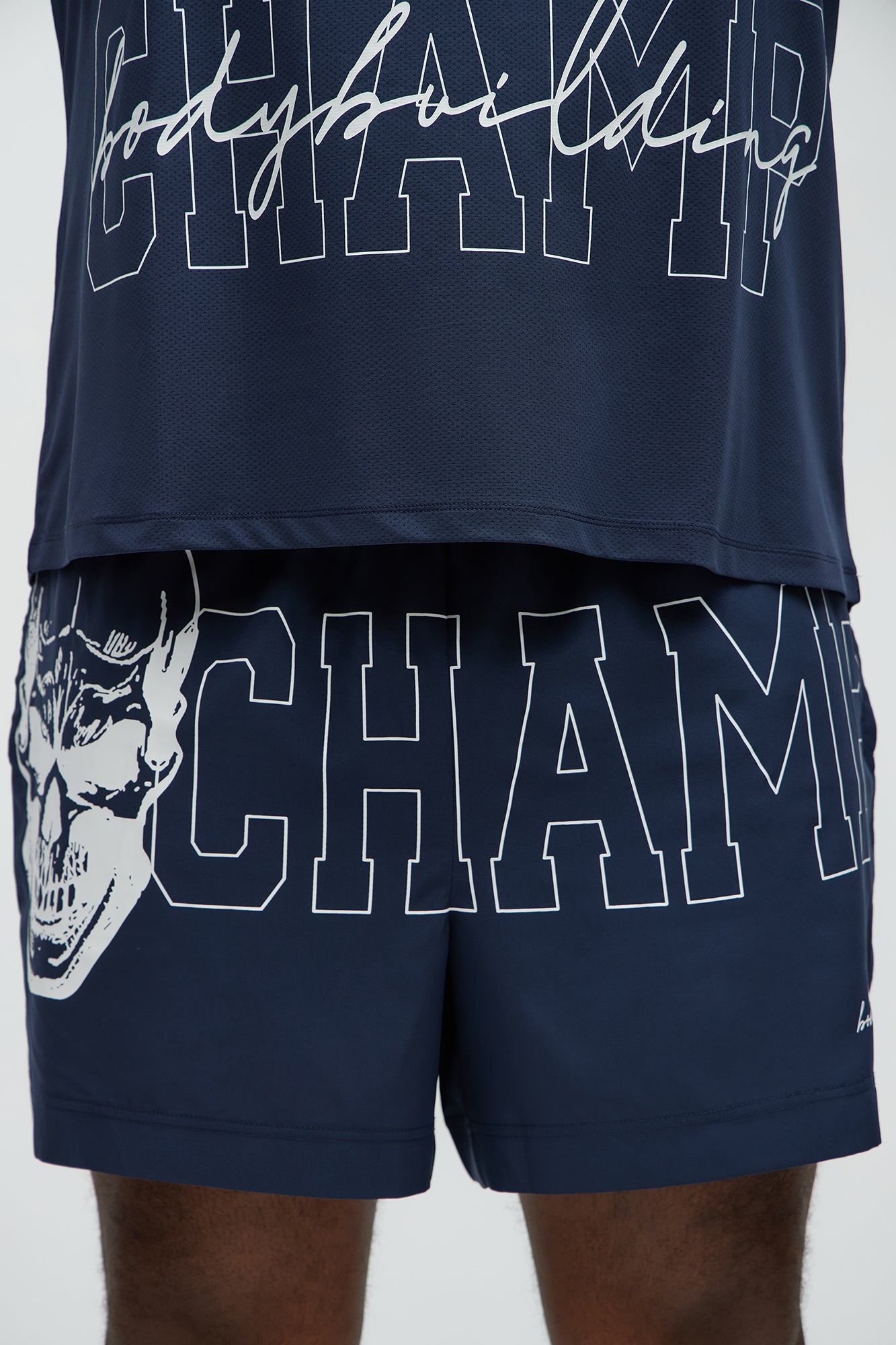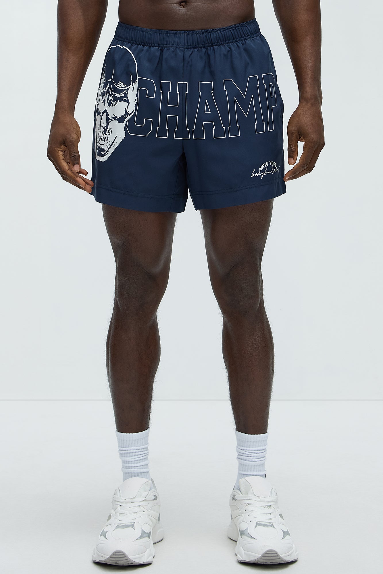 Available In Navy. Woven Short Graphic Detail 5" In-Seam Lightweight Material Elasticated Drawcord Waistband Open Side Pockets 100% Polyester Disclaimer: Print Placement May Vary. Imported |
