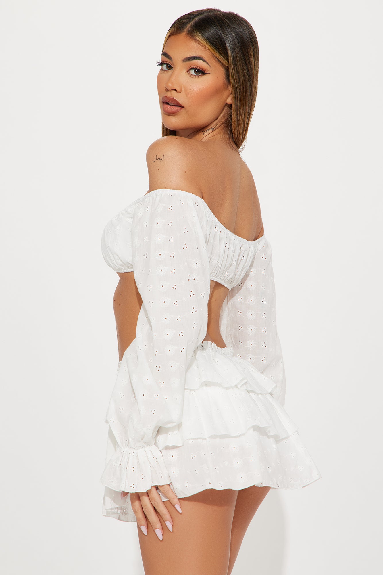 Available In White, Yellow, And Black. Micro Mini Skirt Set Bra Top Off Shoulder Cherry Applique Micro Mini Skirt Shorts Lining Non Stretch 100% Cotton Lining: 95% Polyester 5% Spandex Imported |