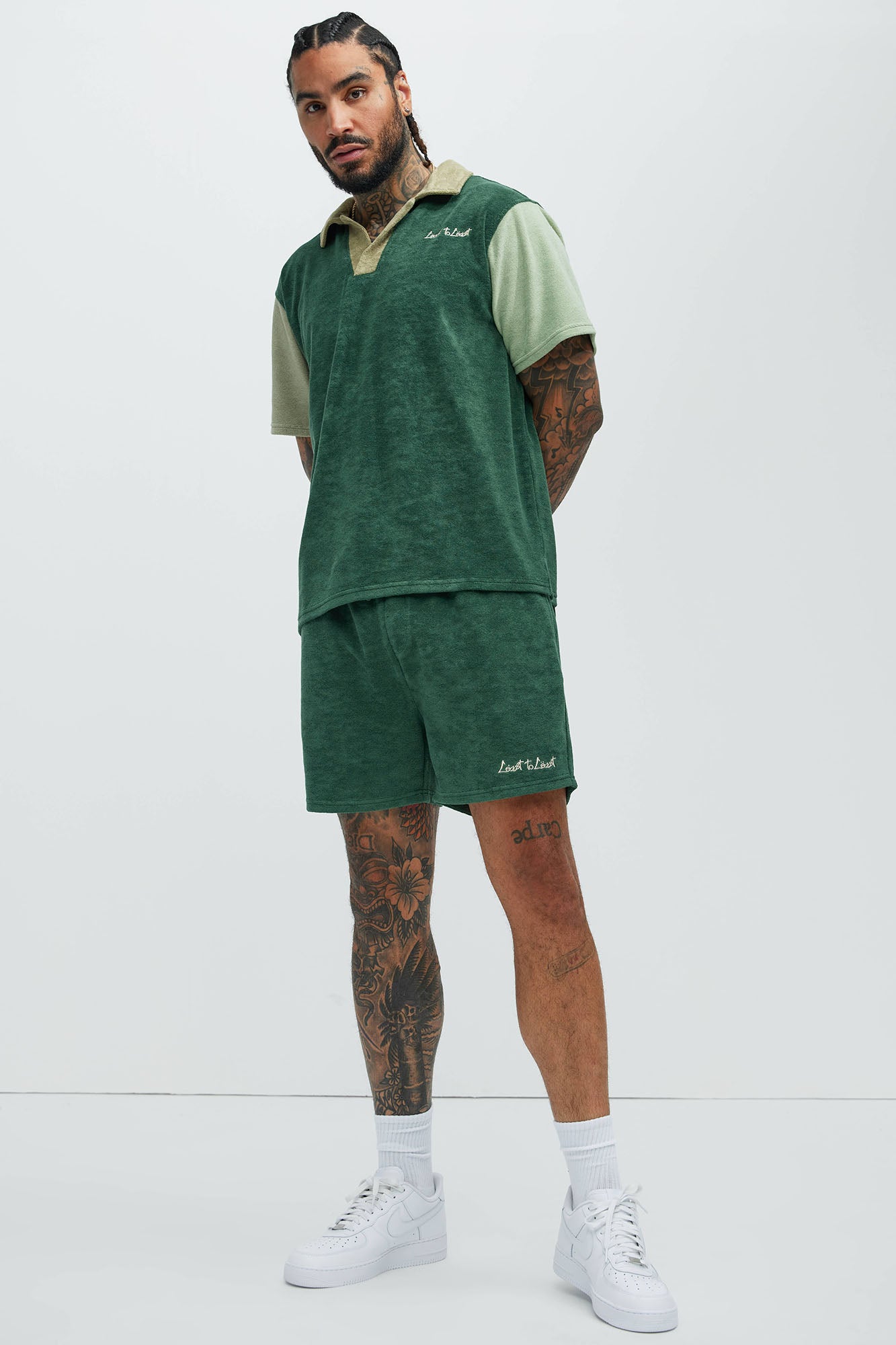 Available In Hunter and Sand Elastic Waistband Drawstring Side Hand Pockets Back Hand Pocket Embroidered Detail Pair With "Coast To Coast Short Sleeve Polo" 55% Cotton 45% Polyester Imported |