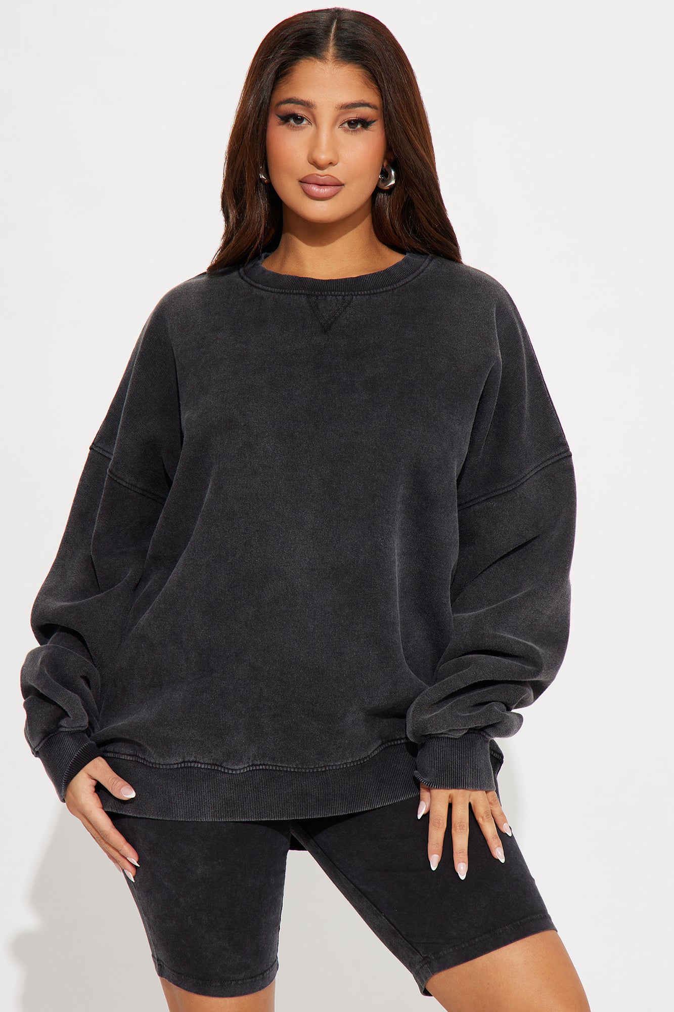 Available In Black. Short Set Crewneck Biker Short Elastic Waistband Stretch Disclaimer: Due To The Specialized Wash Process, Each Garment Is Unique. Top: 60% Cotton 40% Polyester Bottom: 95% Cotton 5% Elastane Imported |