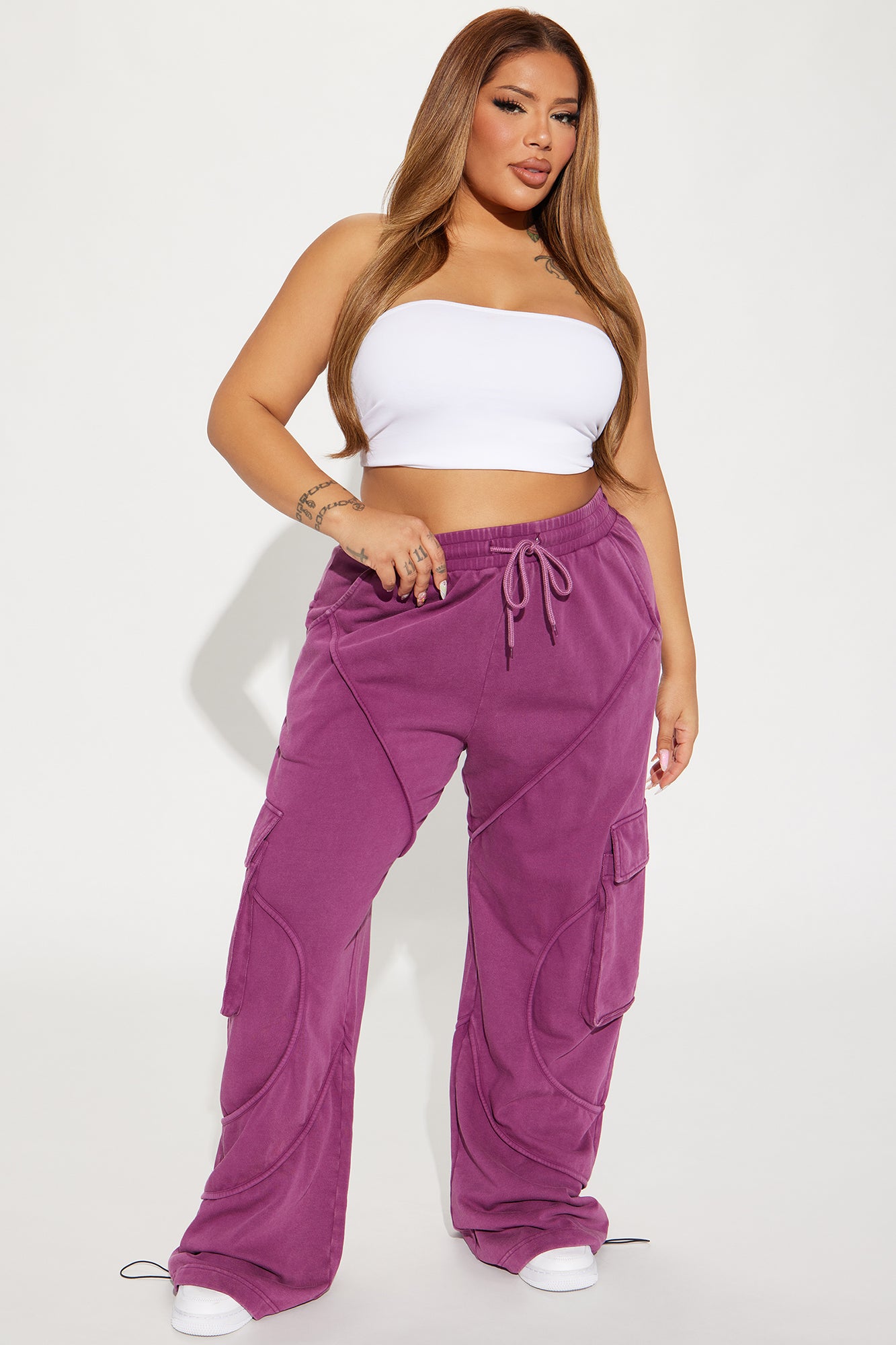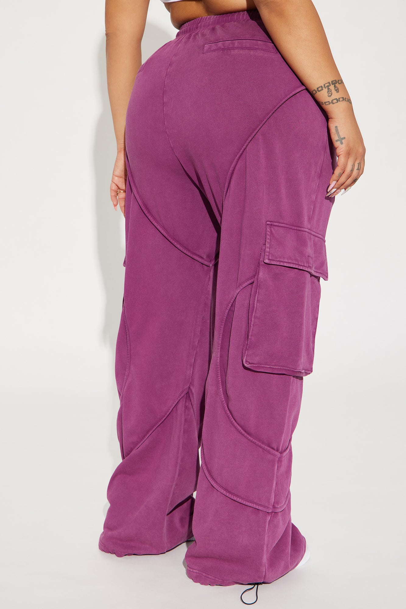 | Available In Charcoal And Purple. French Terry Lounge Pant Washed High Waisted Elastic Waistband Drawstring Wide Leg Hand Pocket Back Welt Nonfunctional Pockets Cargo Pockets Seaming Detail Toggles 82% Cotton 18% Polyester Disclaimer: Due To The Wash Process, Each Garment Is Unique. Imported |