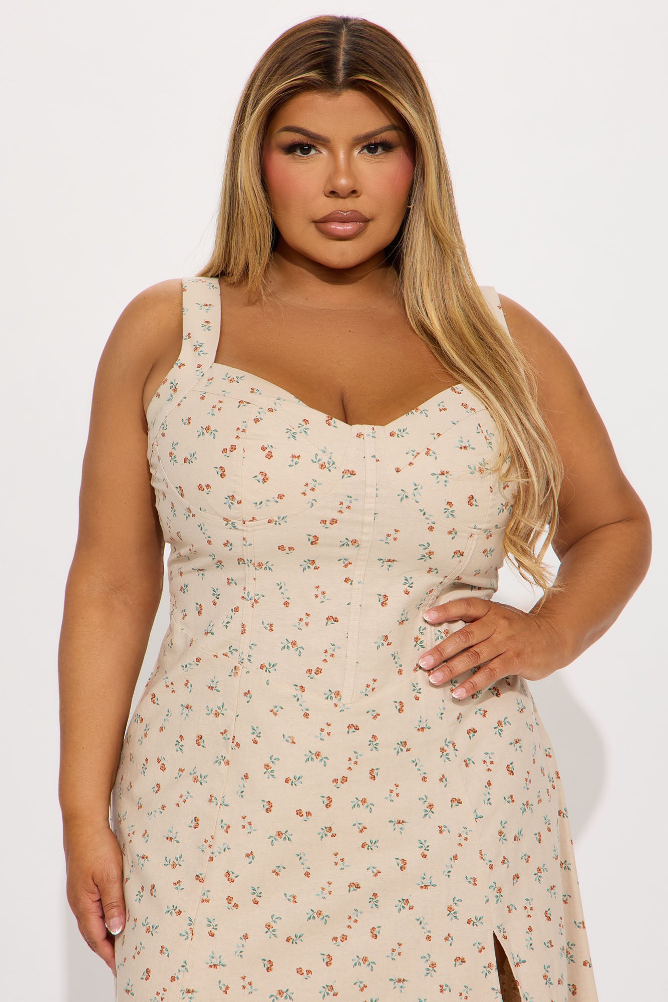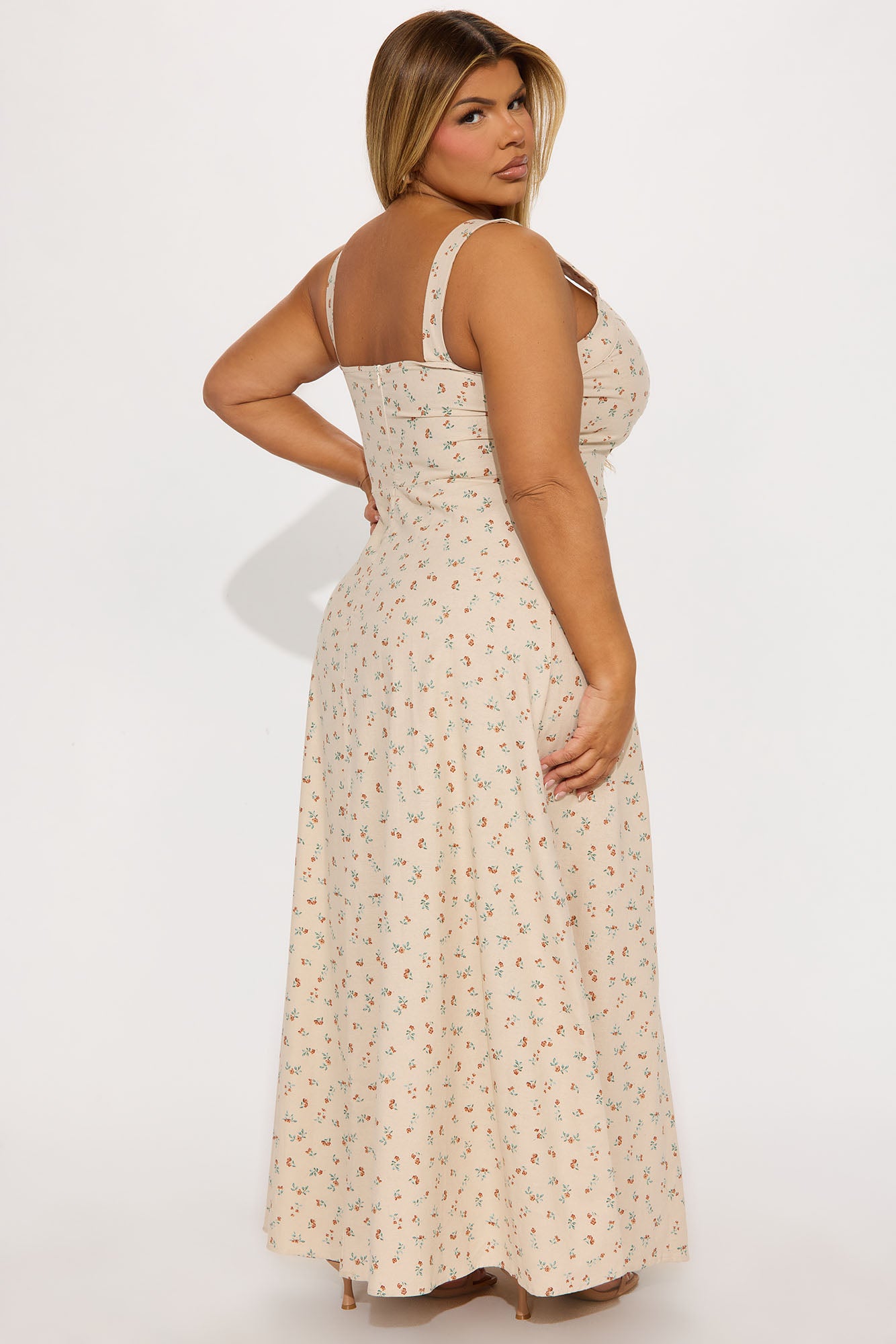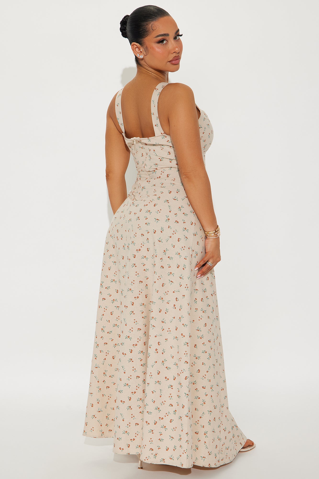Available In Khaki. Twill Maxi Dress Sweetheart Neckline Sleeveless Slit Back Zipper Closure Floral Print Non Stretch Disclaimer: Print Placement May Vary Self: 100% Cotton Lining: 100% Polyester Imported |