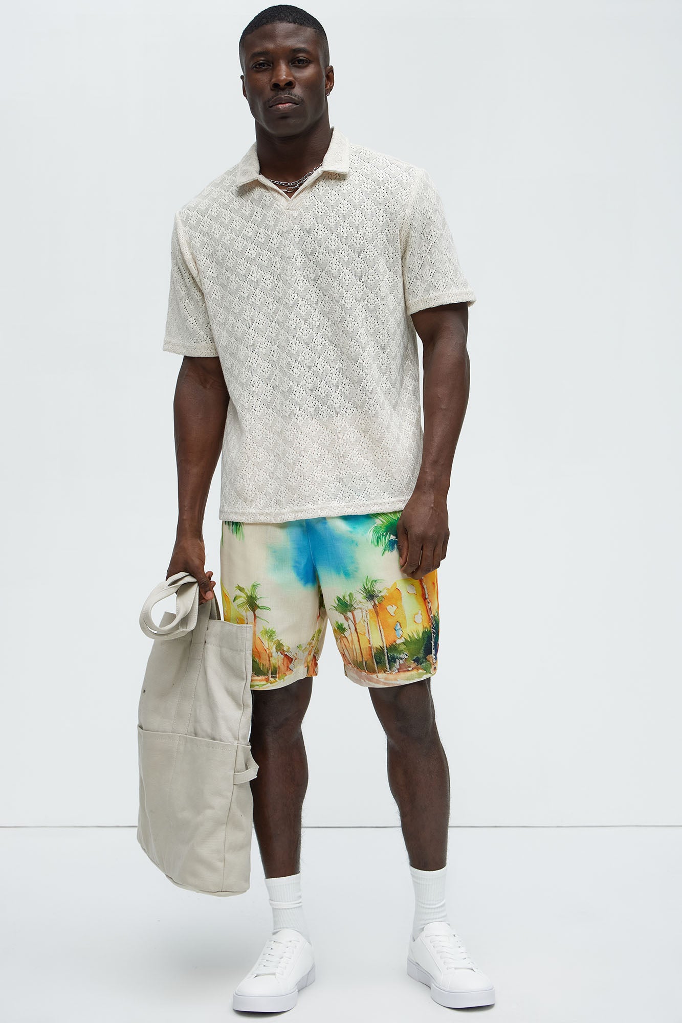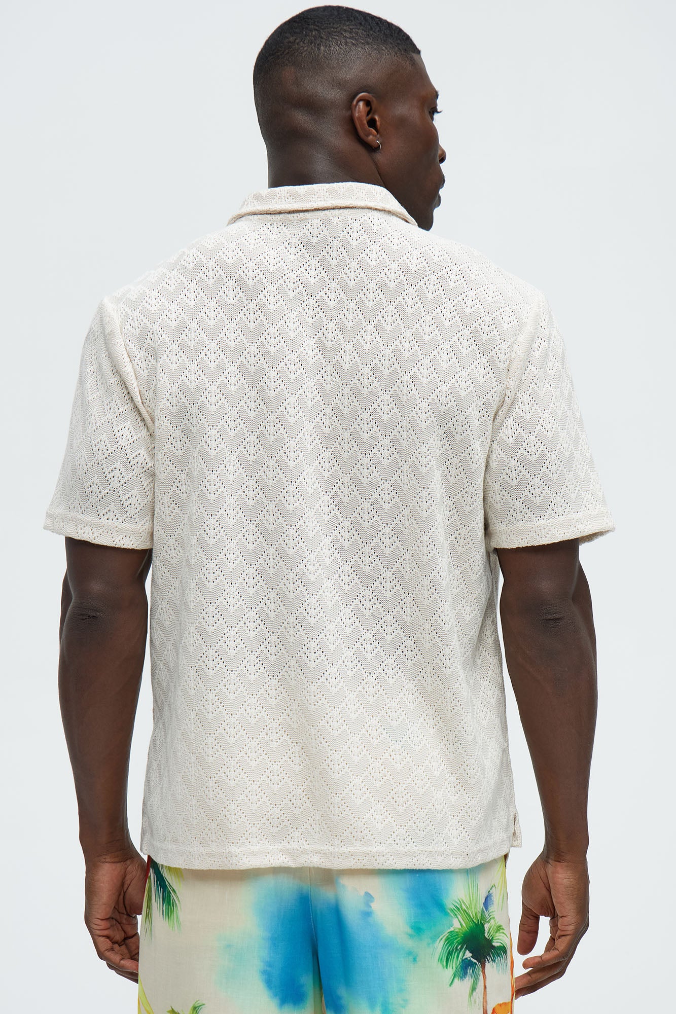 | Available In Cream. Johnny Collar Textured Diamond pattern Short Sleeve 100% Polyester Disclaimer: This garment has been made with delicate materials and may snag or pull if jewelry or watches are worn. Do not wash with items that may cause snagging such as zippers or hooks. This garment is unique and must be handled with care. Imported |