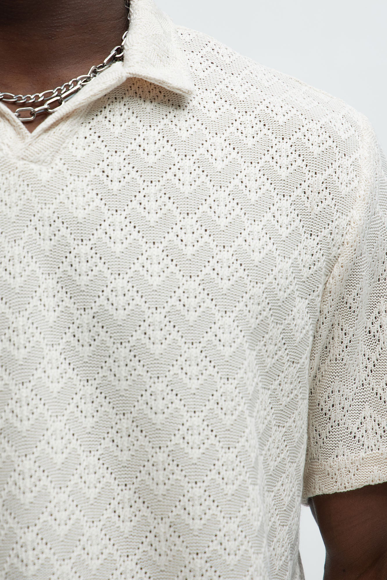 Diamond Shape Knit Johnny Collar Shirt