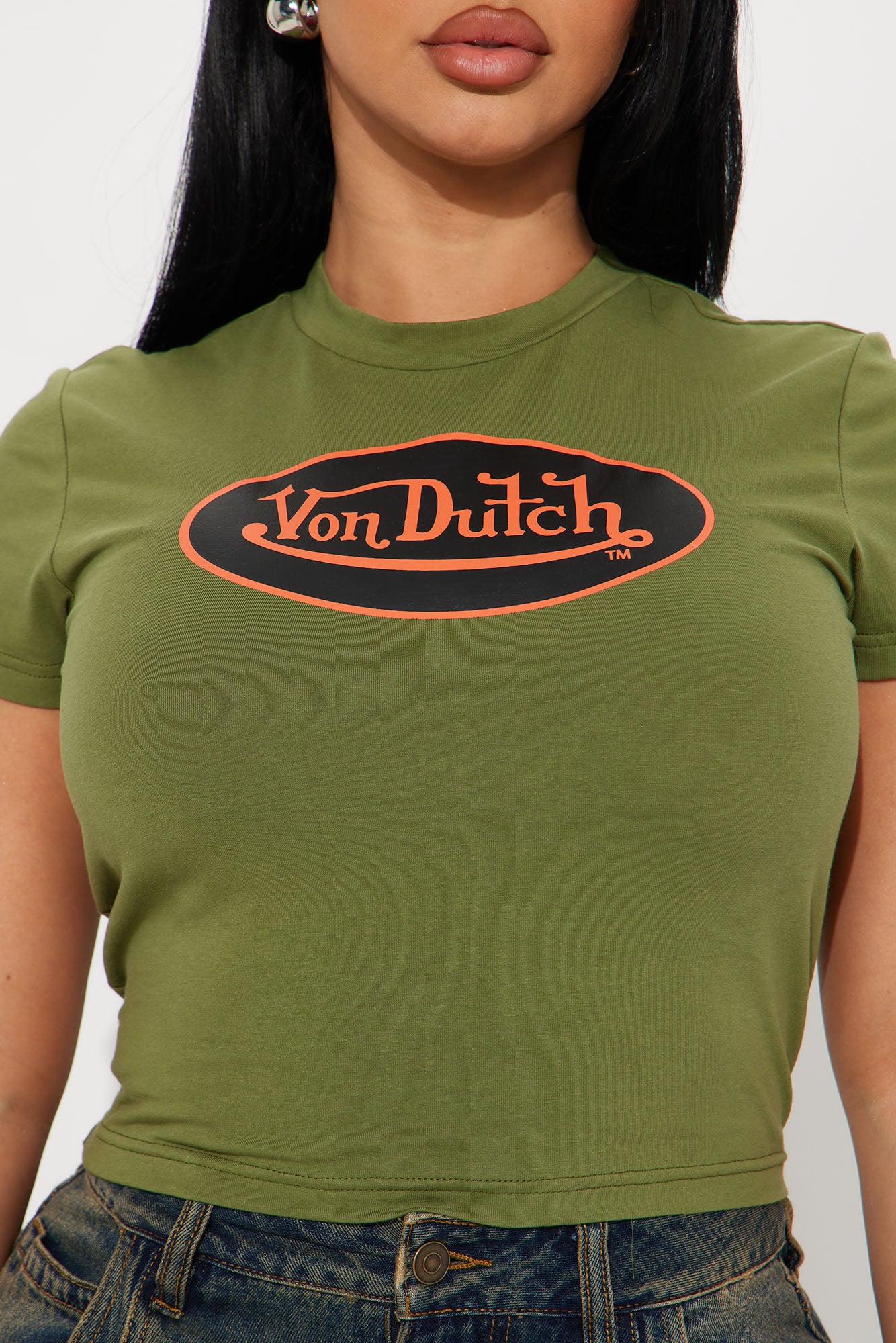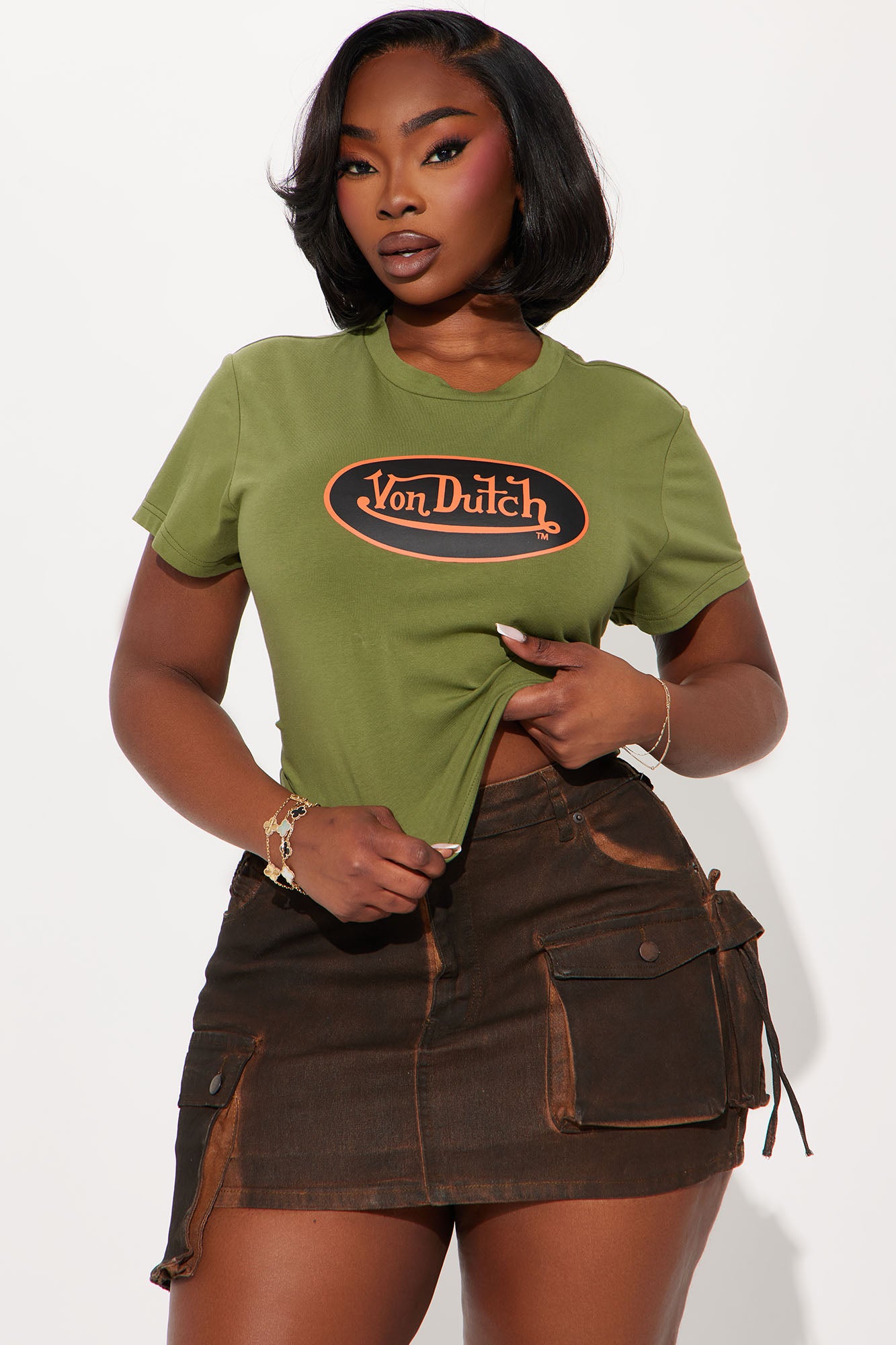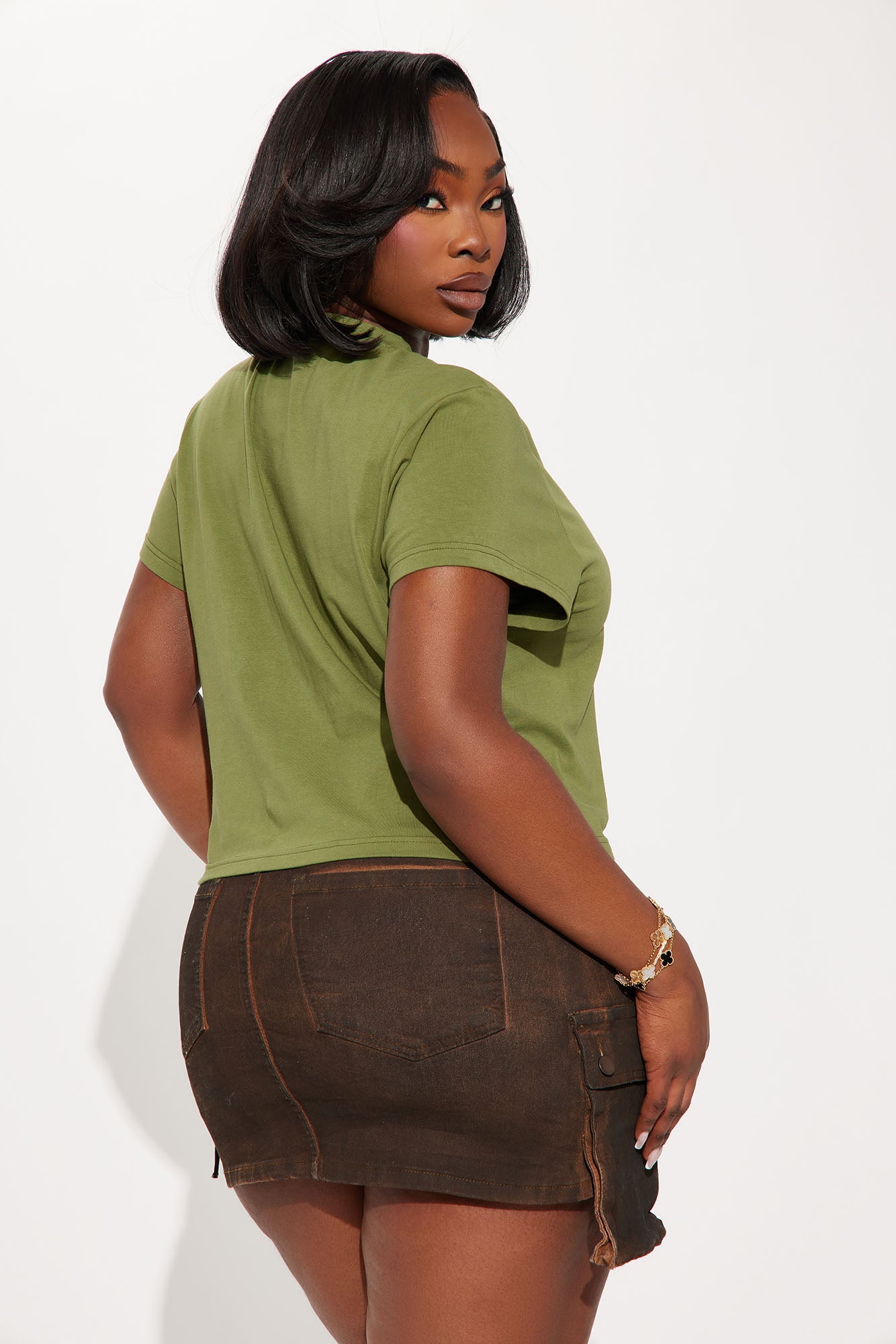 Available In Olive. Baby Tee Scoop Neck Short Sleeve Cropped Screen Patch Disclaimer: Due To The Screen Printing Process A Difference In Saturation May Occur. Each Garment Is Unique. 95% Cotton 5% Spandex Imported |