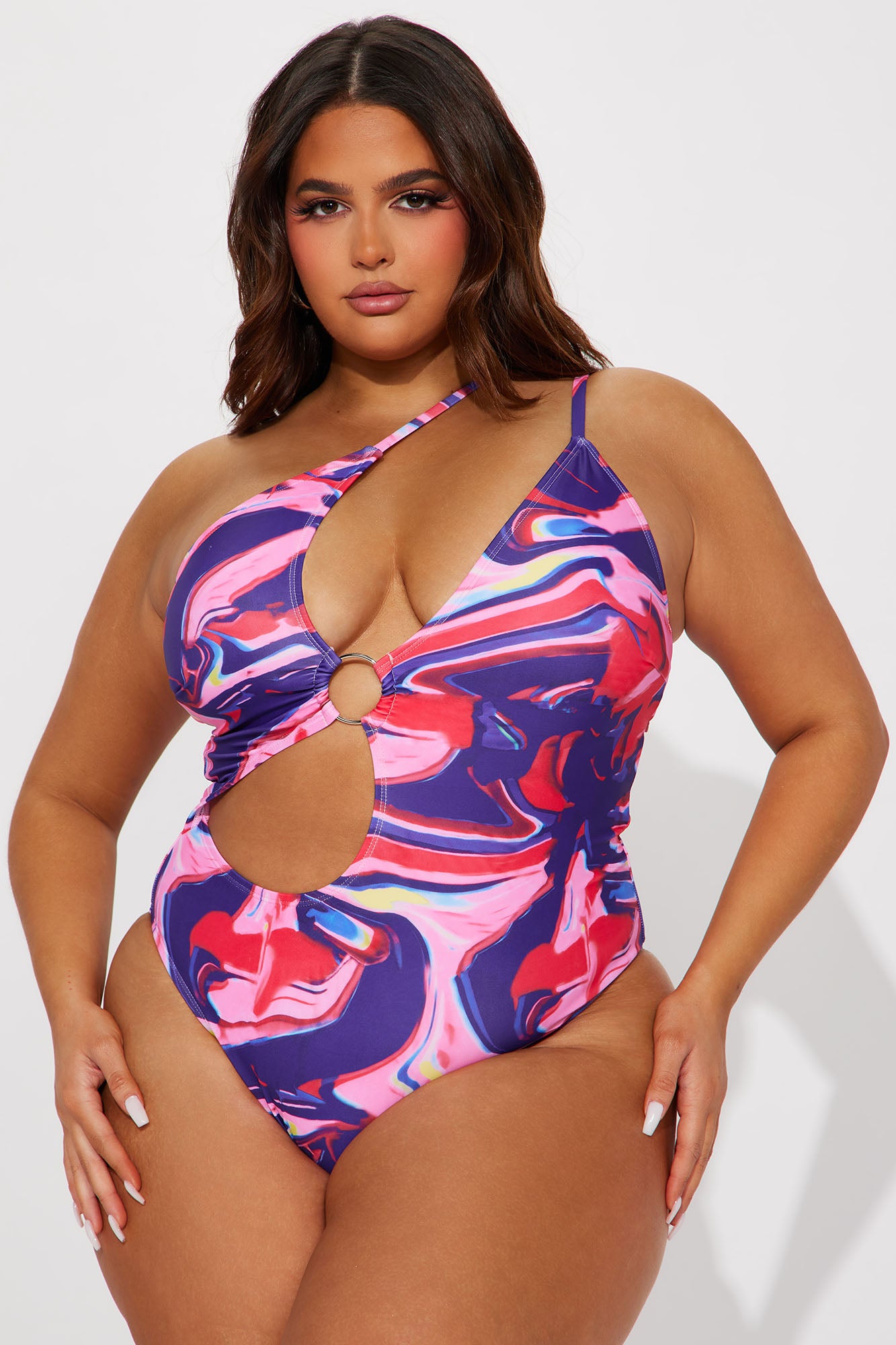 Available In Multi Color. 1 Piece Swimsuit Swirl Print One Shoulder Cut Out Final Sale Disclaimer: Print Placement Will Vary. Shell: 82% Polyester 18% Spandex Lining: 92% Polyester 8% Spandex Imported |