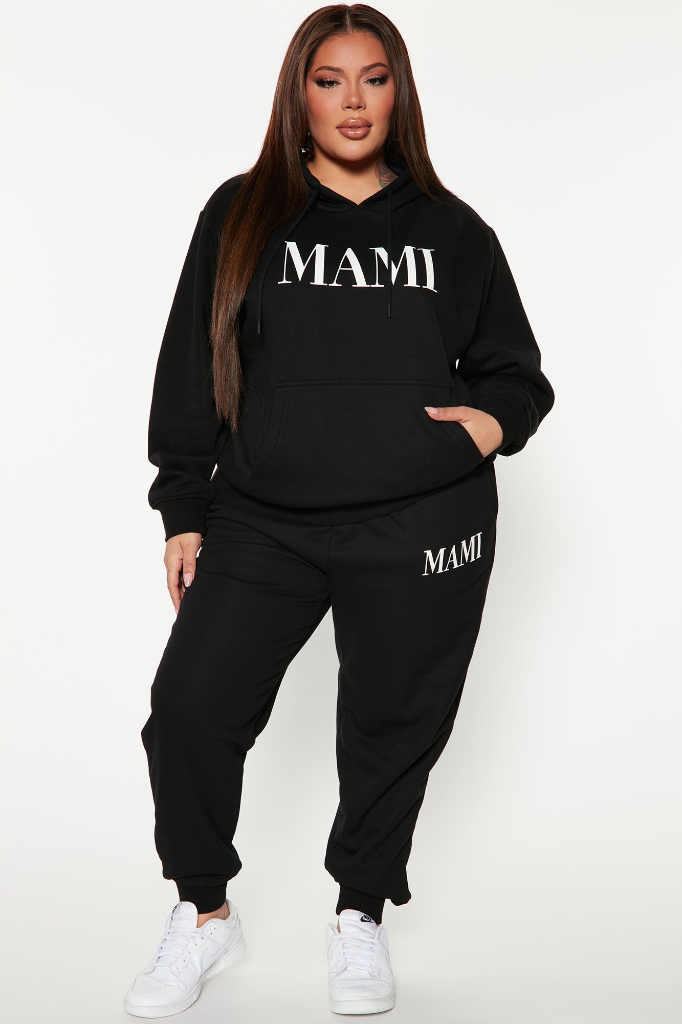 Available In Black, Tan, And Red. Hooded Kangaroo Pocket "Mami" Verbiage Pair with Family Goals Women's Mami Jogger Disclaimer: Due To The Specialized Dye And Printing Process A Difference In Saturation May Occur. Each Garment Is Unique. 60% Cotton 40% Polyester Imported |