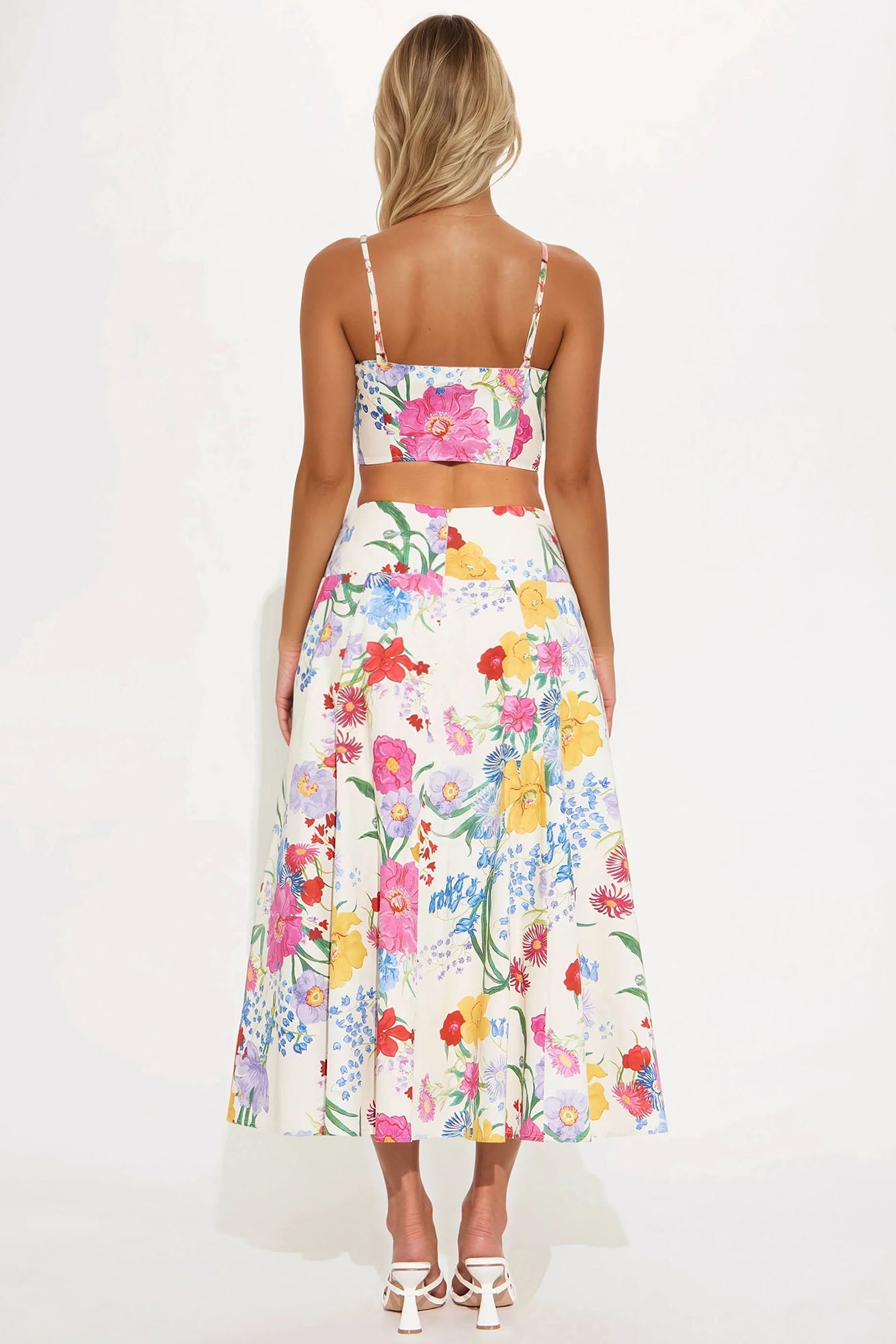 Available In Cream/combo. Bra Top And Midi Skirt Set Non Stretch Invisible Side Zipper Top Closure Adjustable Straps Invisible Back Zipper Skirt Closure Self:100% Cotton Contrast:100% Polyester Lining:97% Polyester 3% Spandex Imported |