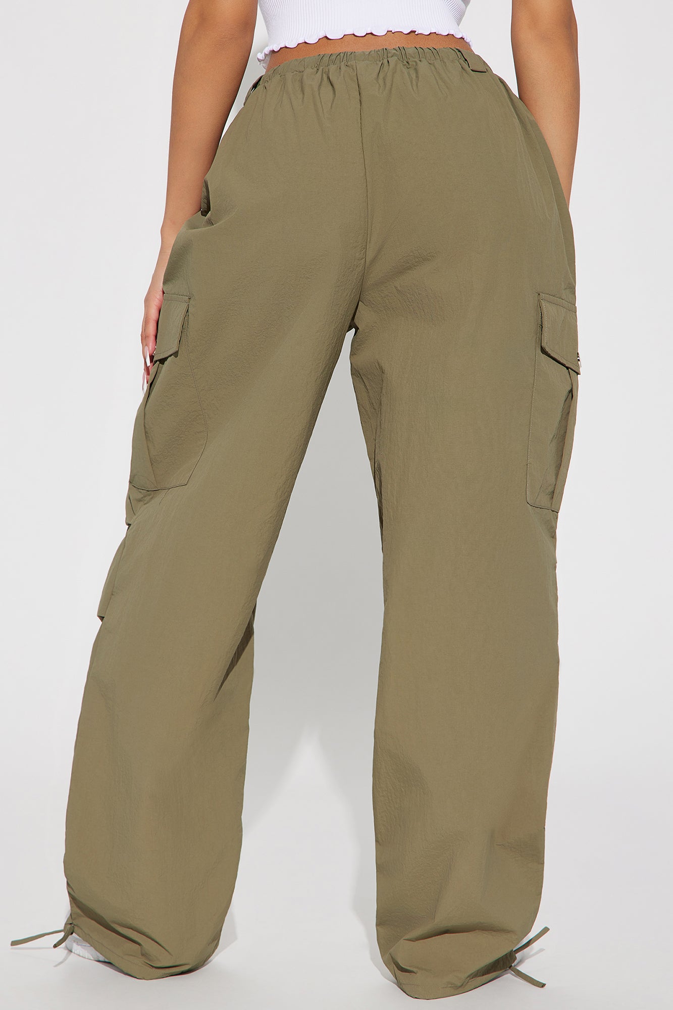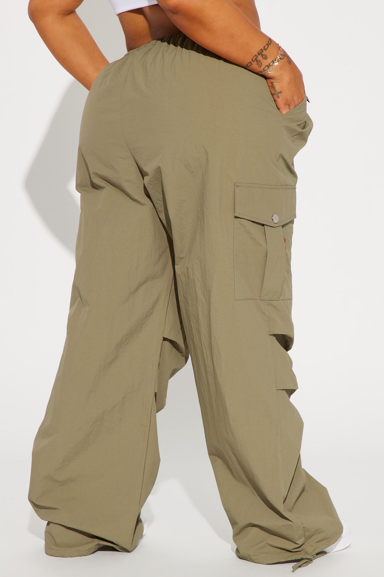 Available In Olive And Pink. Parachute Jogger Pant Drawstring Waistband Functional Cargo Pockets 33.5" Inseam Stacked Detailing Drawstring Jogger Ankle Hem Non-Stretch Fabric 100% Nylon Imported |