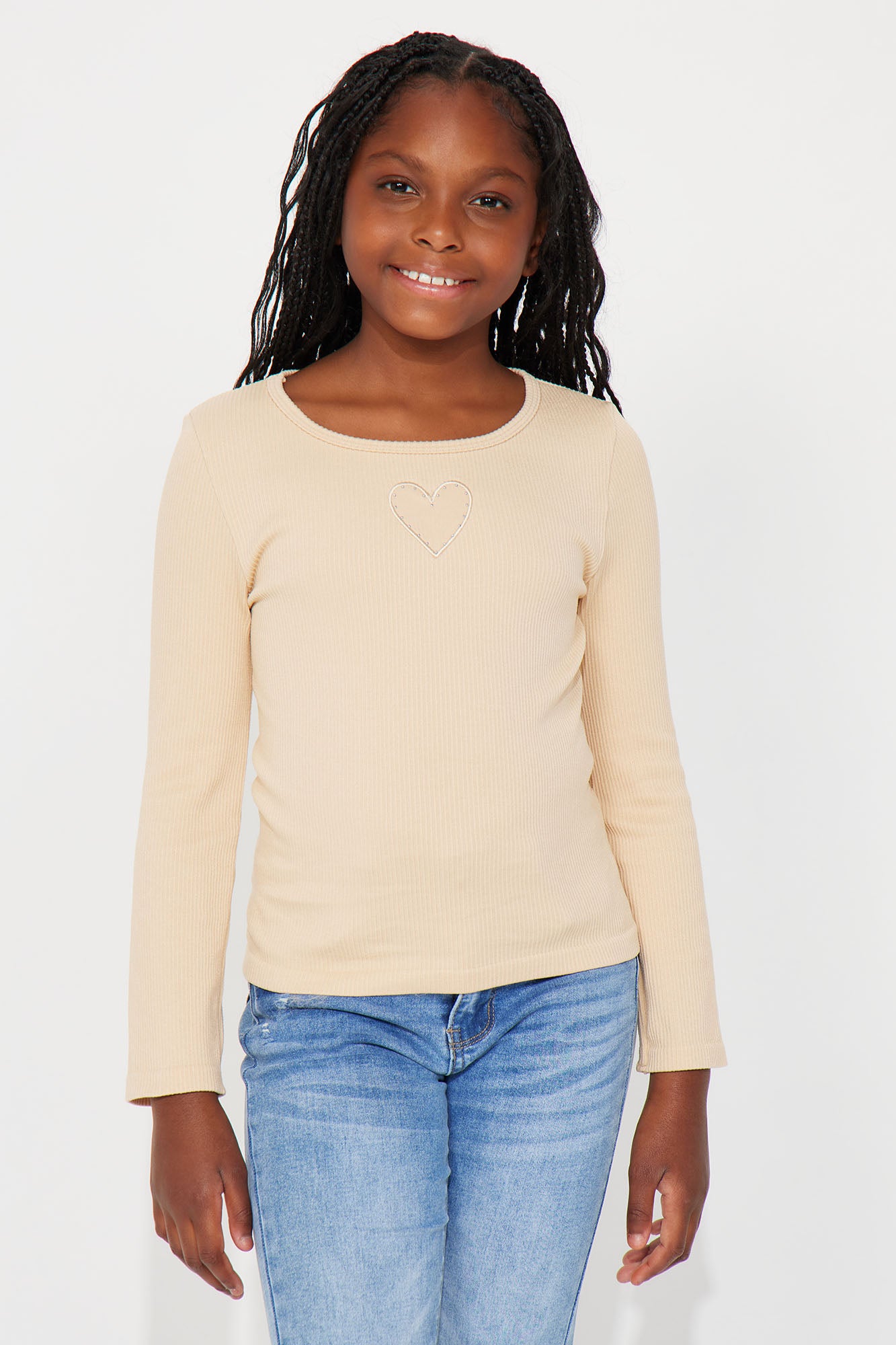 Mini Seamless Ribbed Long Sleeve Heart Applique