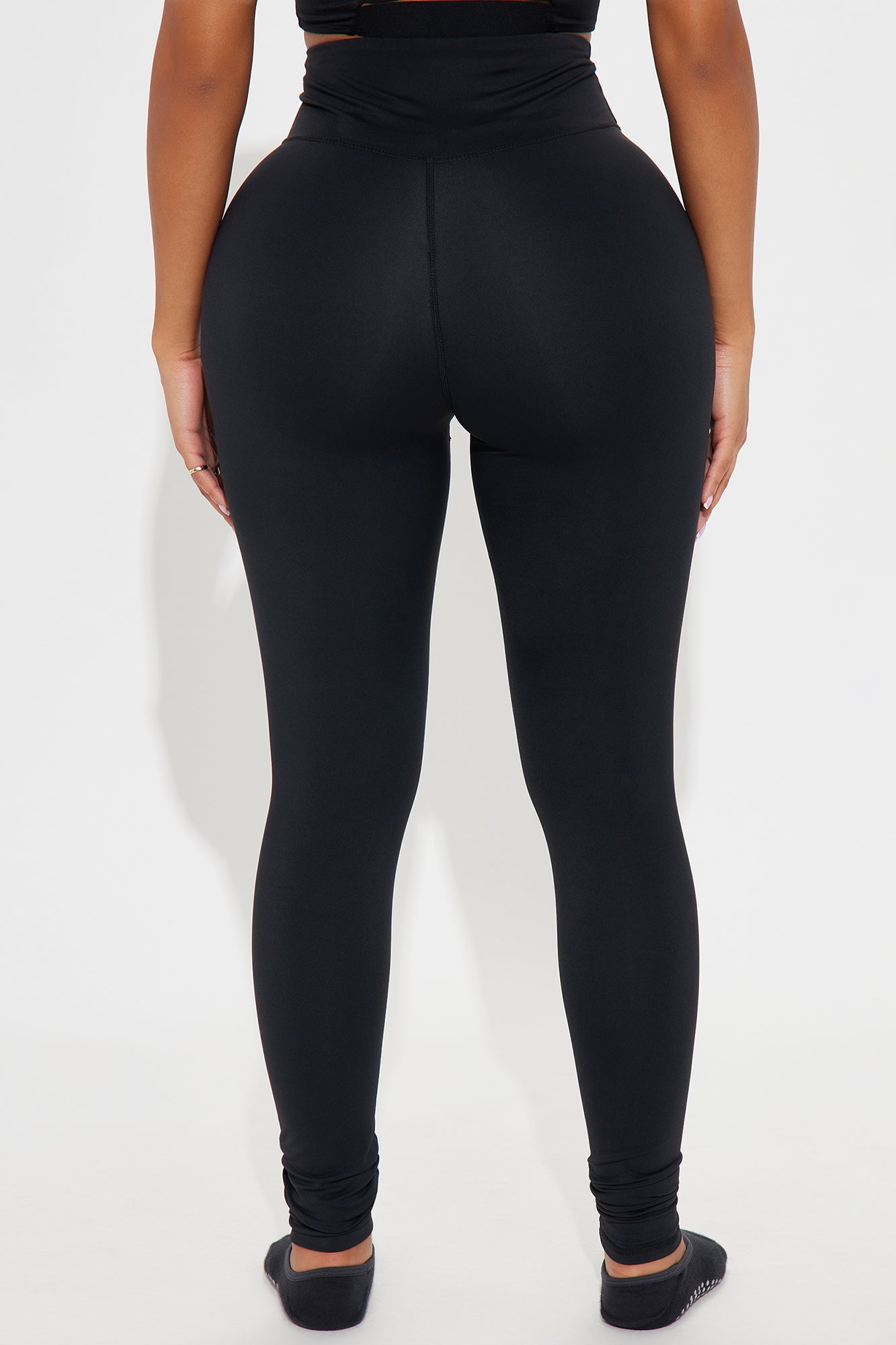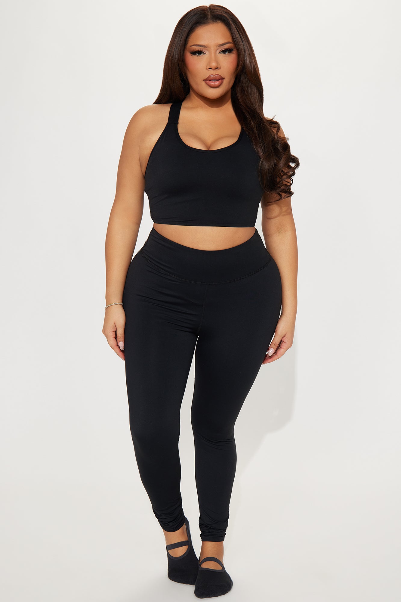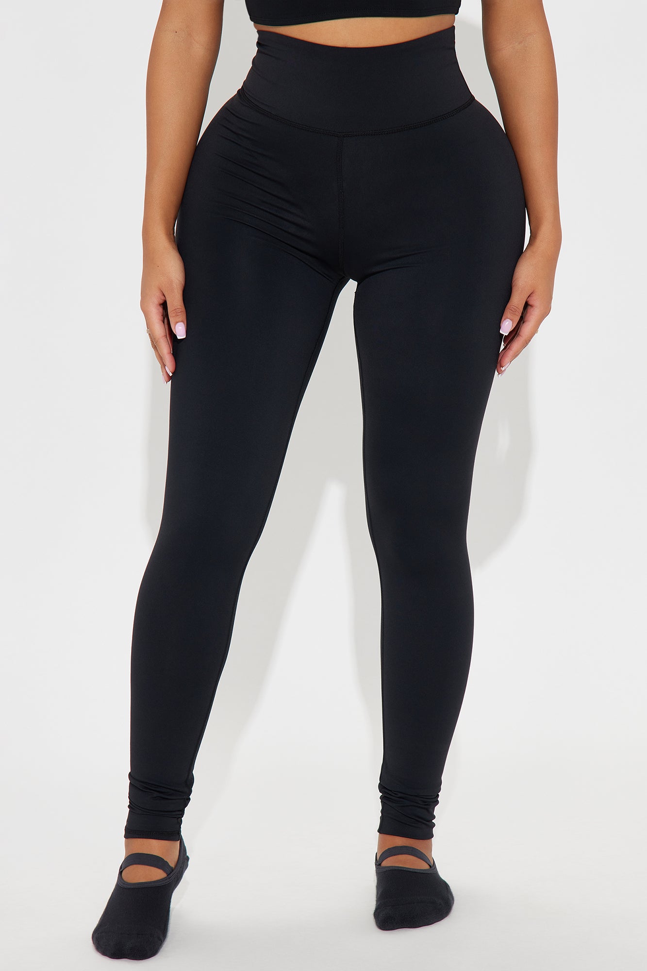 Available In Black And Lavender. Active Legging High Waisted 32" Inseam Compression Fabric Footie Detail Low Impact Stretch Pair with "Giselle Twist Active Sports Bra" 80% Nylon 20% Elastane Imported |