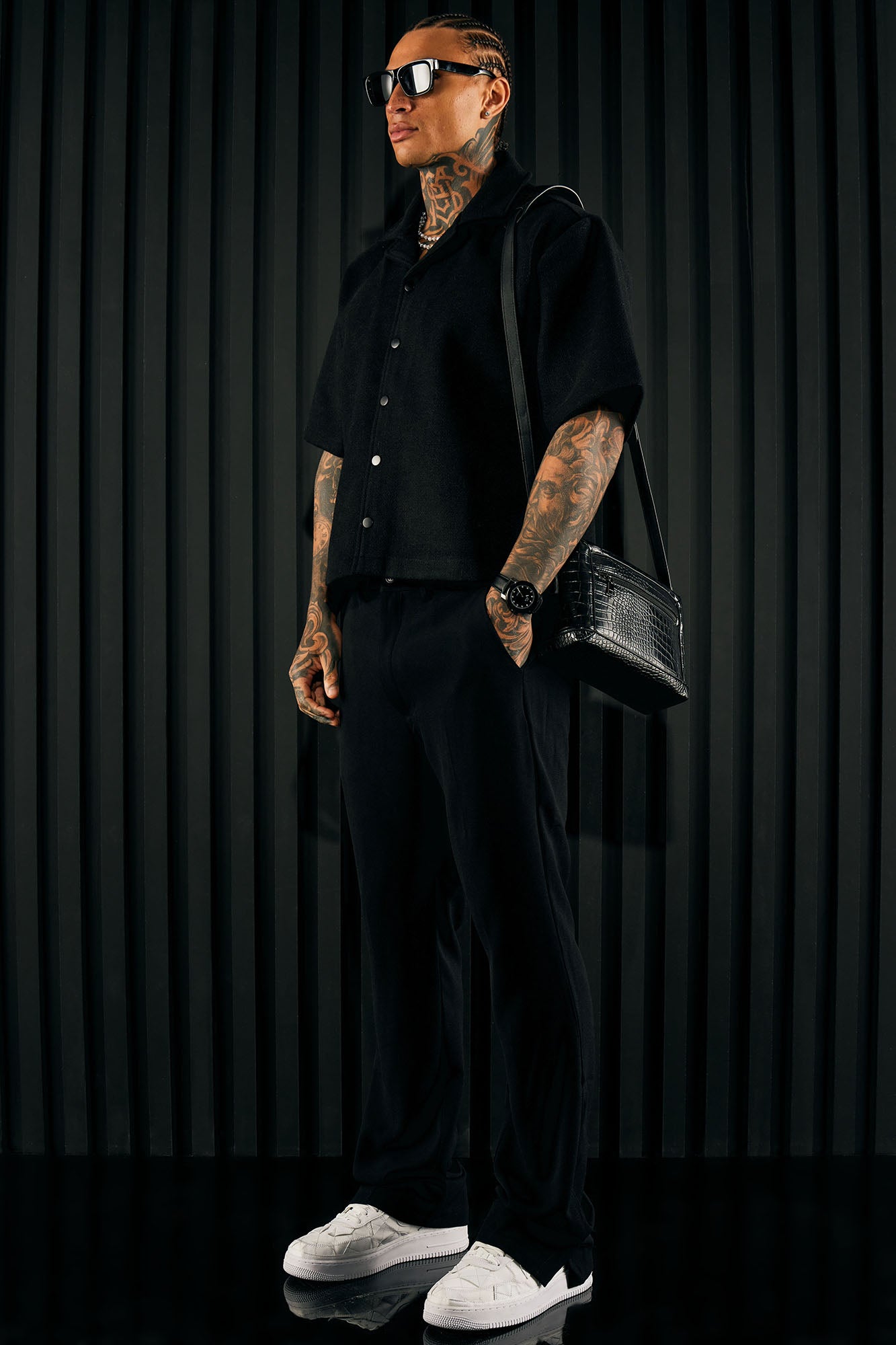 Model Height: 6'4 - Waist Size: 34 - Wearing Large Big & Tall: Height 6'5 - Waist Size: 42 - Wearing XXXL Available In Black. Flare Fit Stretch Fabric Zip Fly Button Closure Side Hand Pockets Back Pockets Side Slit At Hem Detail Pair With "Golden Hour Short Sleeve Shirt" 96% Polyester 4% Elastane Imported |