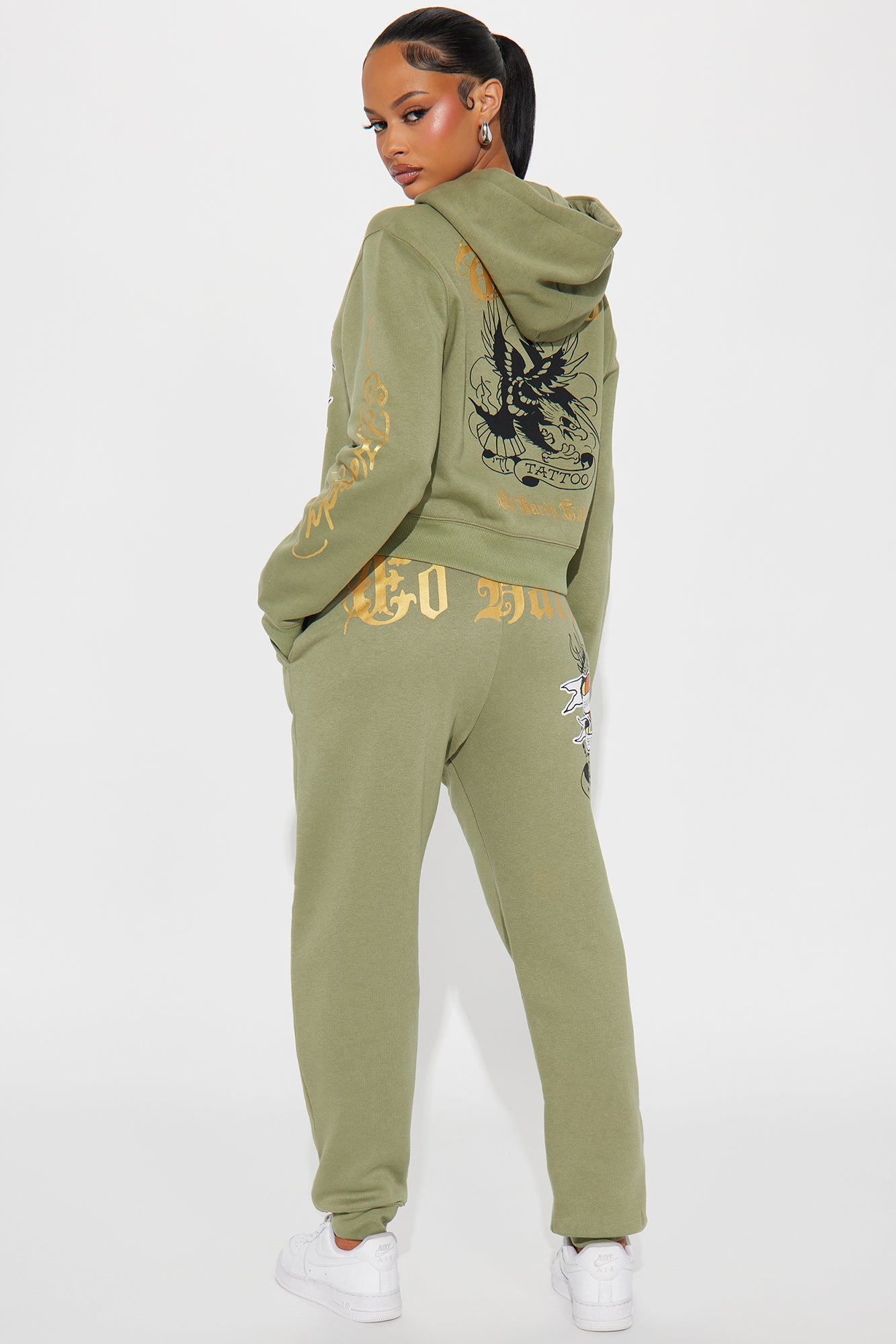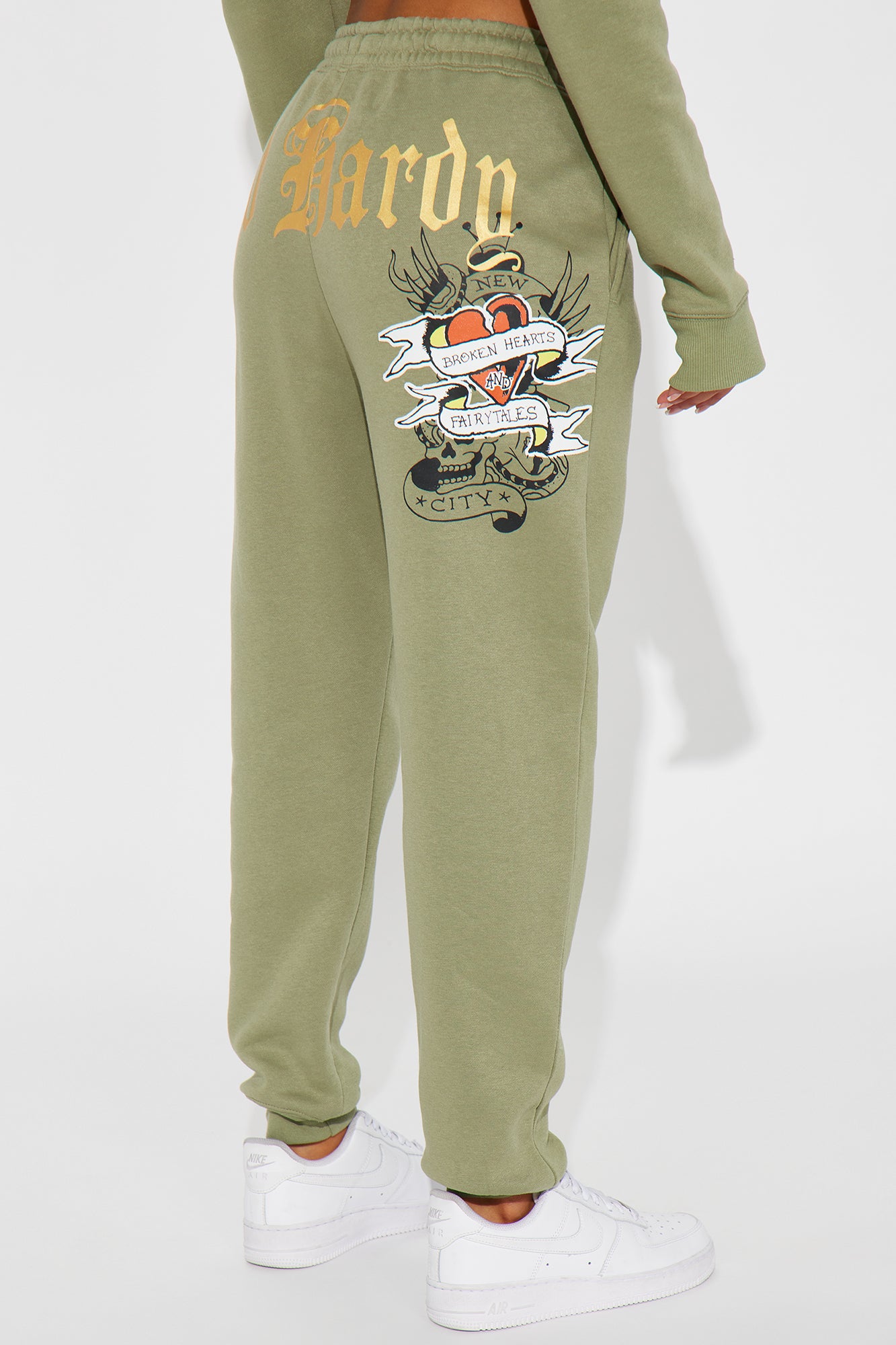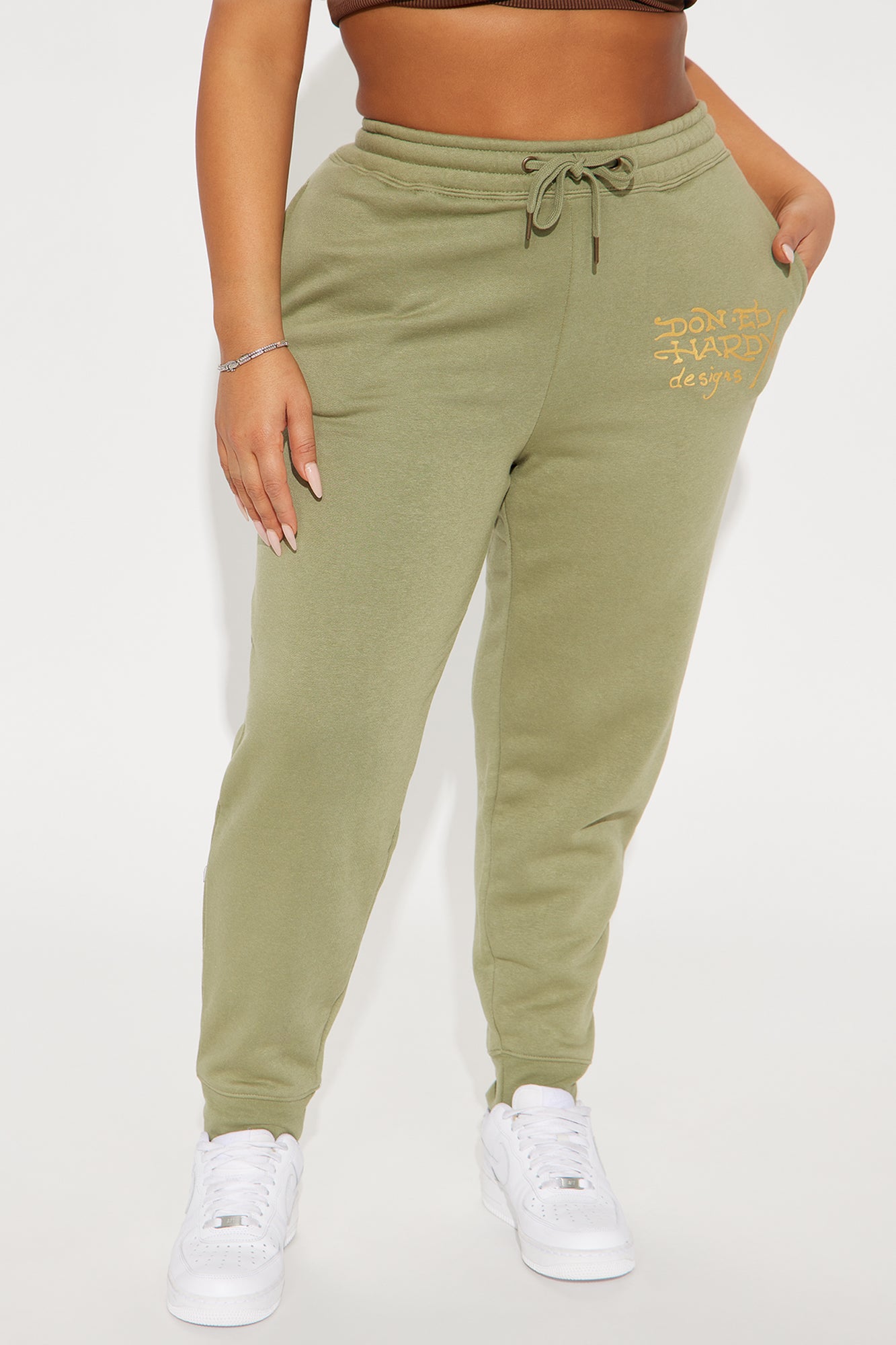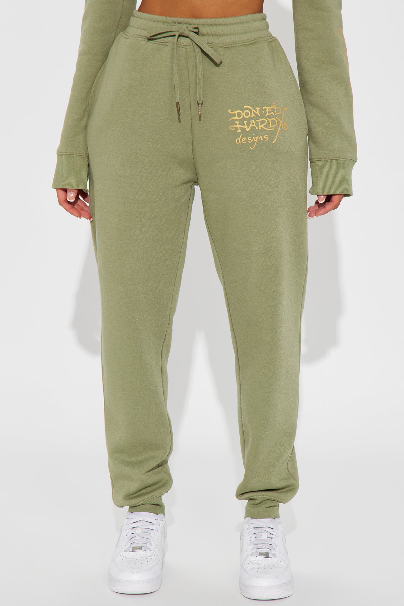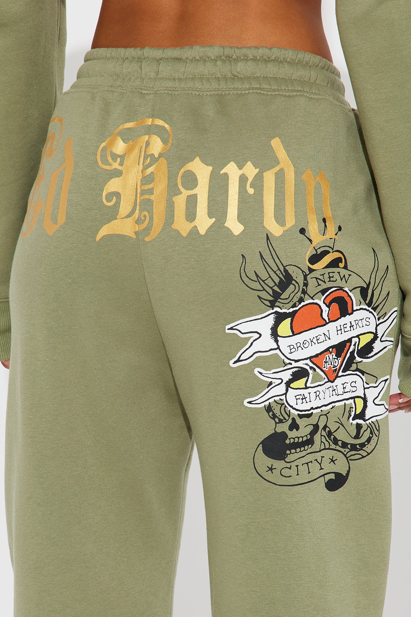 Available In Sage. Jogger With Drawstring Stretch Ed Hardy Graphic Front and Back Screen Pair To "Ed Hardy Broken Hearts Cropped Hoodie" Disclaimer: Due To The Printing Process A Difference In Saturation May Occur. Each Garment Is Unique. Self: 55% Cotton 45% Polyester Imported |