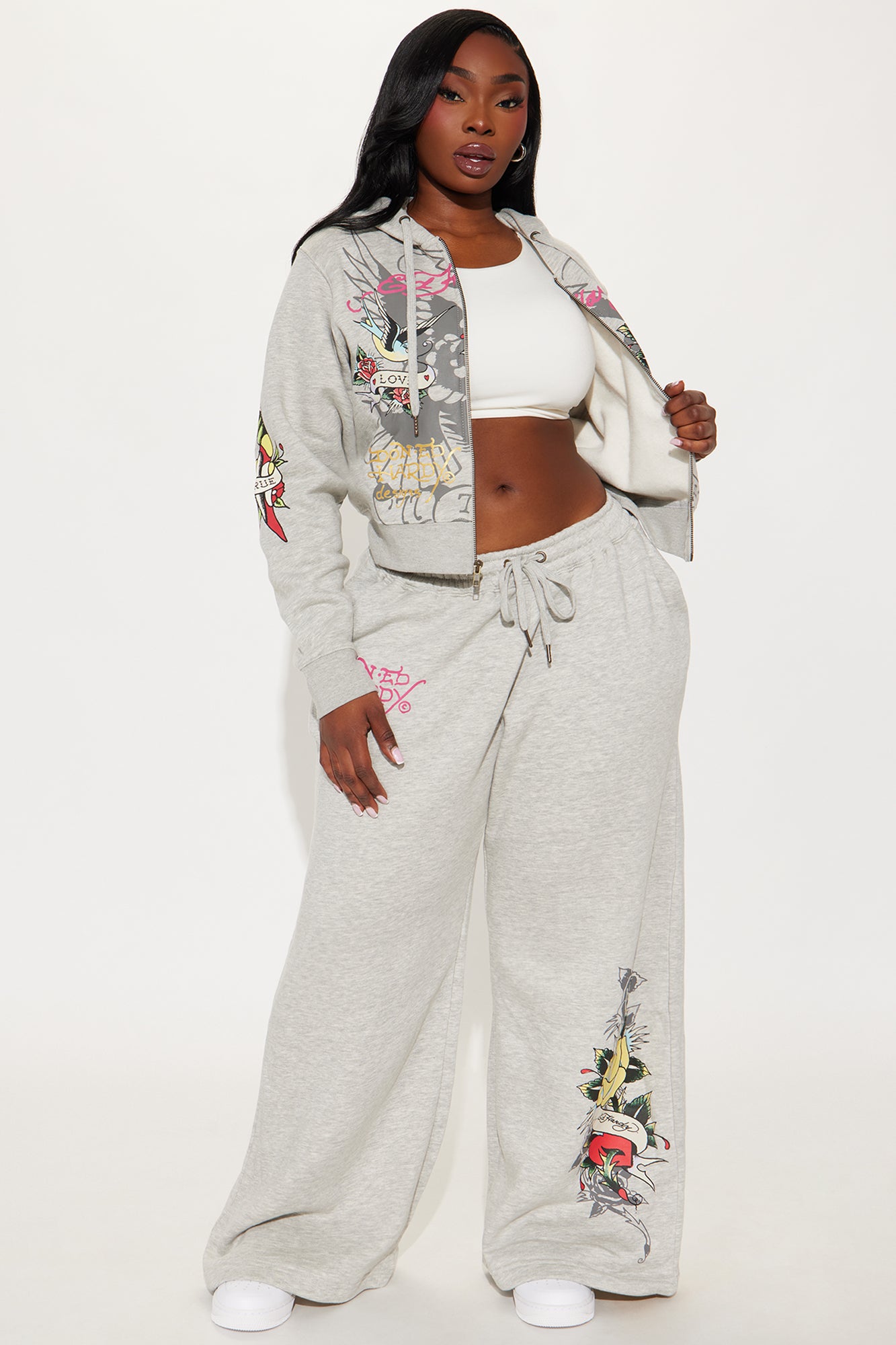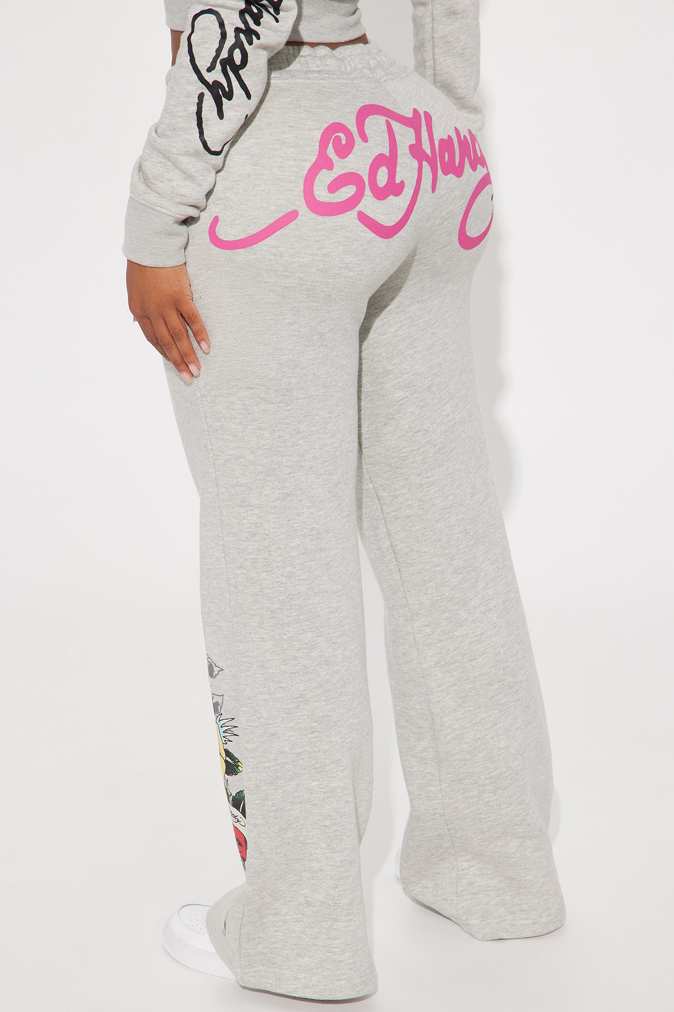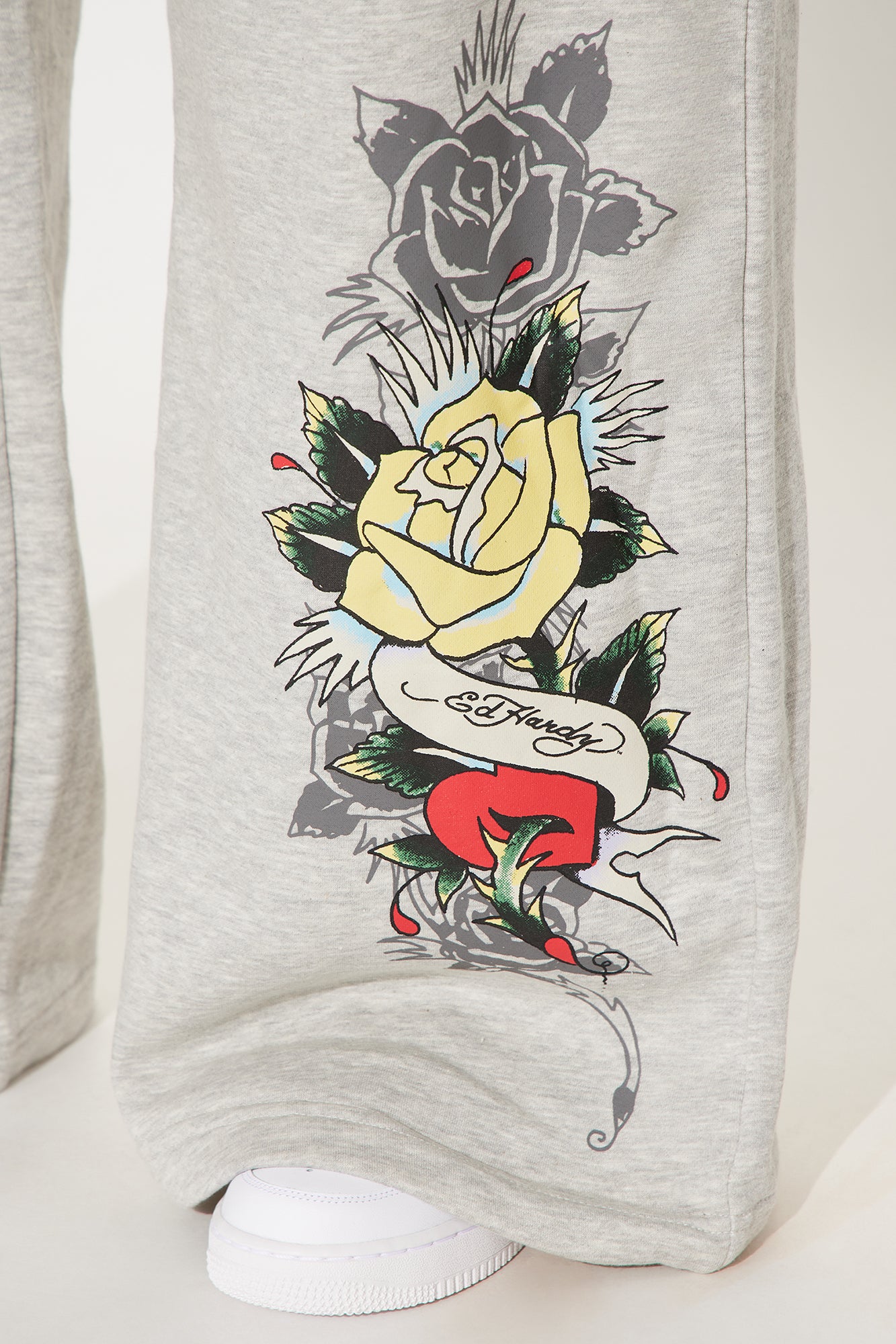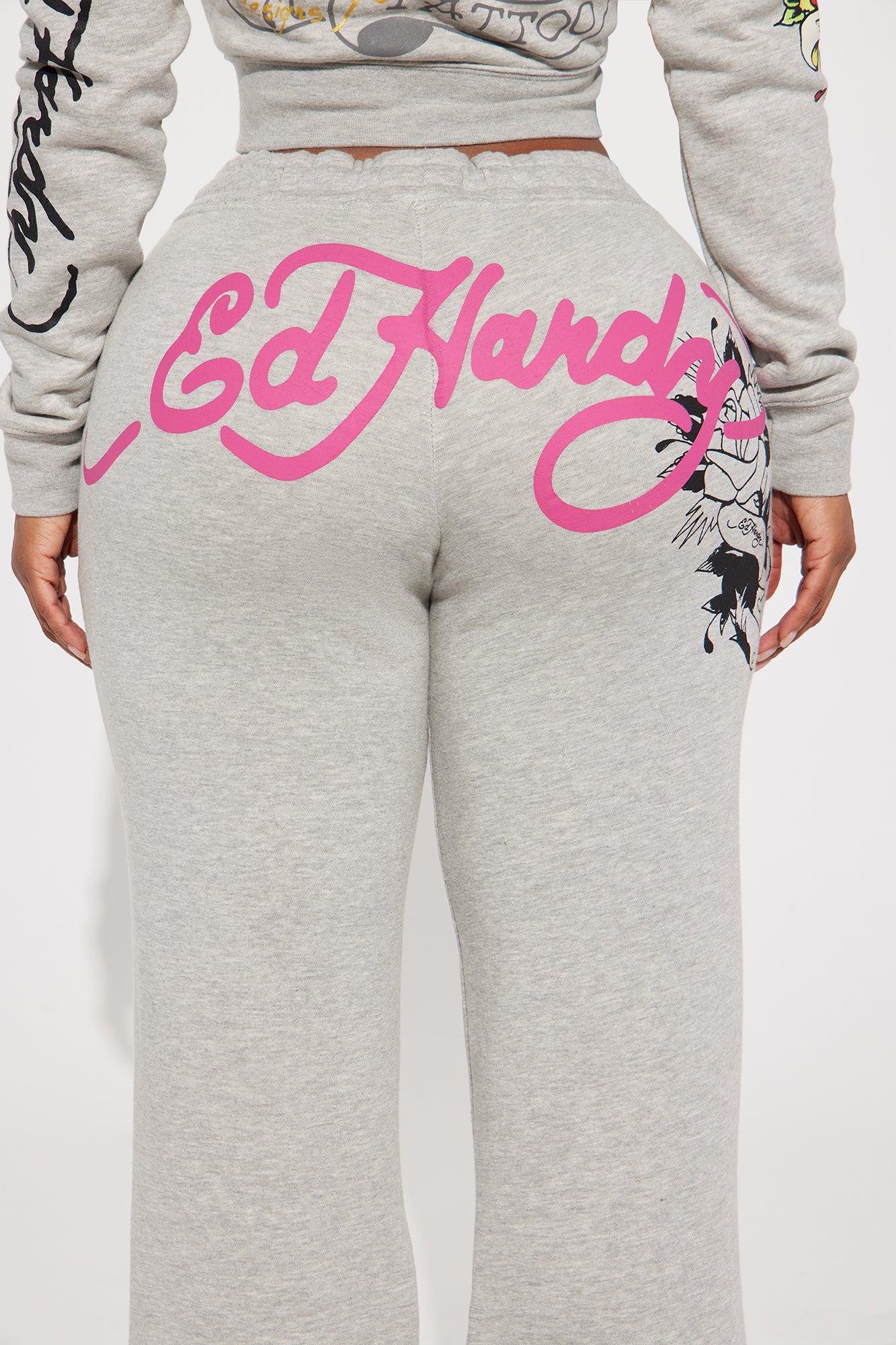 Available In Heather Grey. Wide Leg Pant Drawstring Front And Back Screen Ed Hardy Graphic Stretch Pair To "Ed Hardy Rose And Sword Zip Front Hoodie" Disclaimer: Due To The Printing Process A Difference In Saturation May Occur. Each Garment Is Unique. 55% Cotton 45% Polyester Imported |
