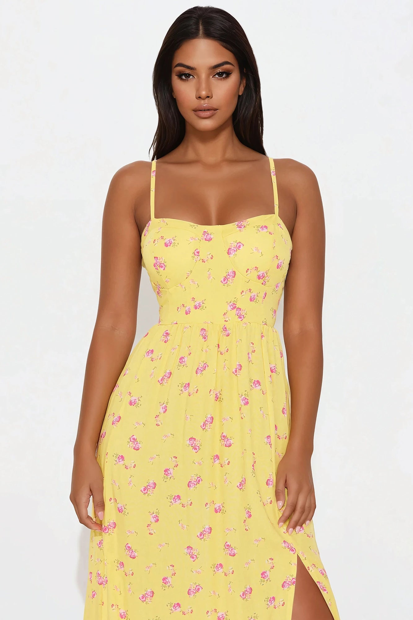 Available In Yellow/combo And Lavender/combo. Maxi Dress Sweetheart Neckline Bra Cups Smocked Back Side Slit Disclaimer: Due To The Printing Process A Difference In Saturation May Occur. Each Garment Is Unique 100% Rayon Imported |