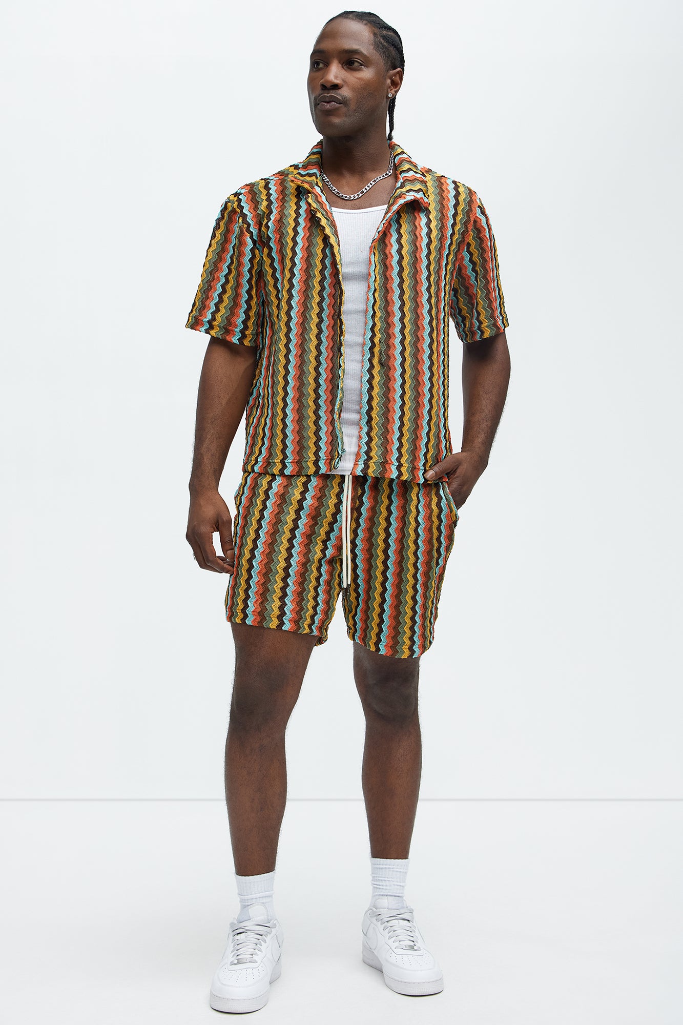 Available In Multi Color. Elastic Waist Drawstring Side pockets Pair With "Harris Zig Zag Short Sleeve Button Up" Shell: 95% Polyester 5% Spandex Lining: 100% Polyester Imported |