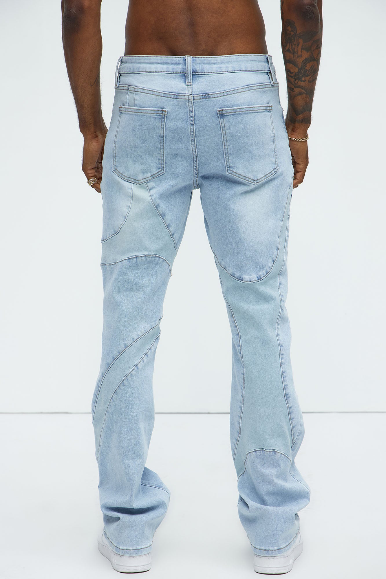 Available In Light Wash. Stacked Slim Flared Fit Zip Fly Button Closure 5 Pocket Detail Paneled Detail 66% Cotton, 32% Polyester, 2% Spandex Disclaimer: Due To The Specialized Wash Process, Each Garment Is Unique. Imported |