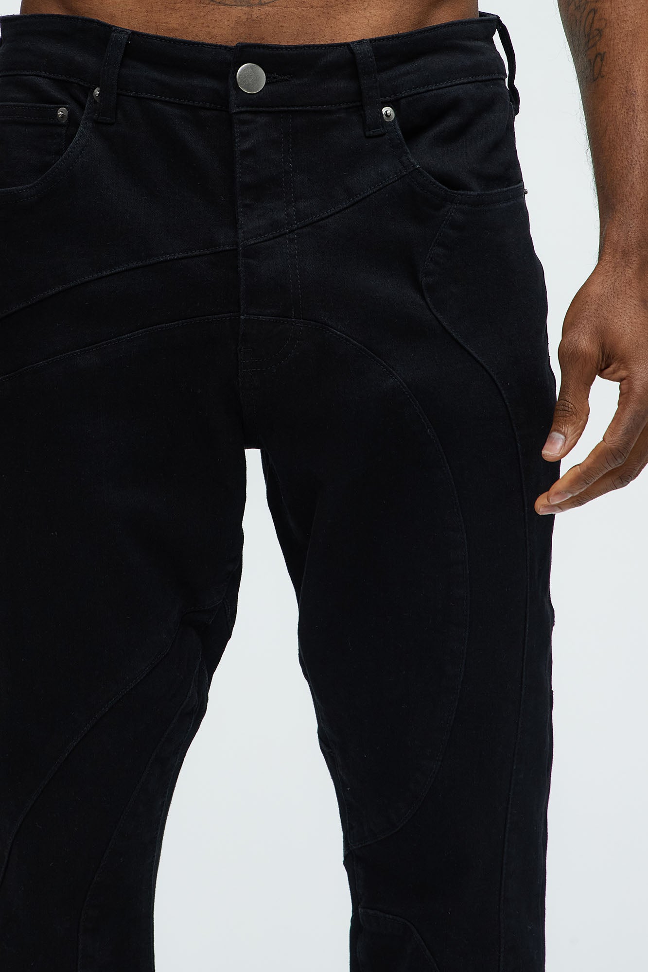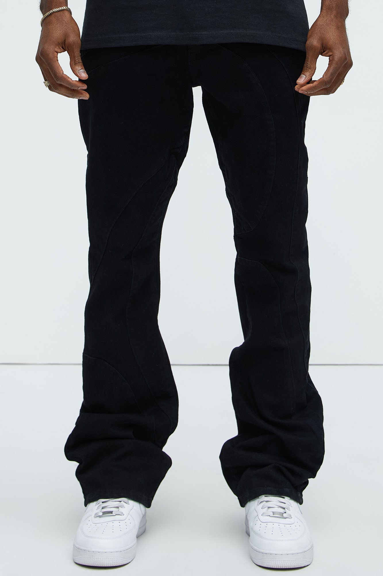 Available In Black. Stacked Slim Flared Fit Zip Fly Button Closure 5 Pocket Detail Paneled Detail 66% Cotton, 32% Polyester, 2% Spandex Disclaimer: Due To The Specialized Wash Process, Each Garment Is Unique. Imported |