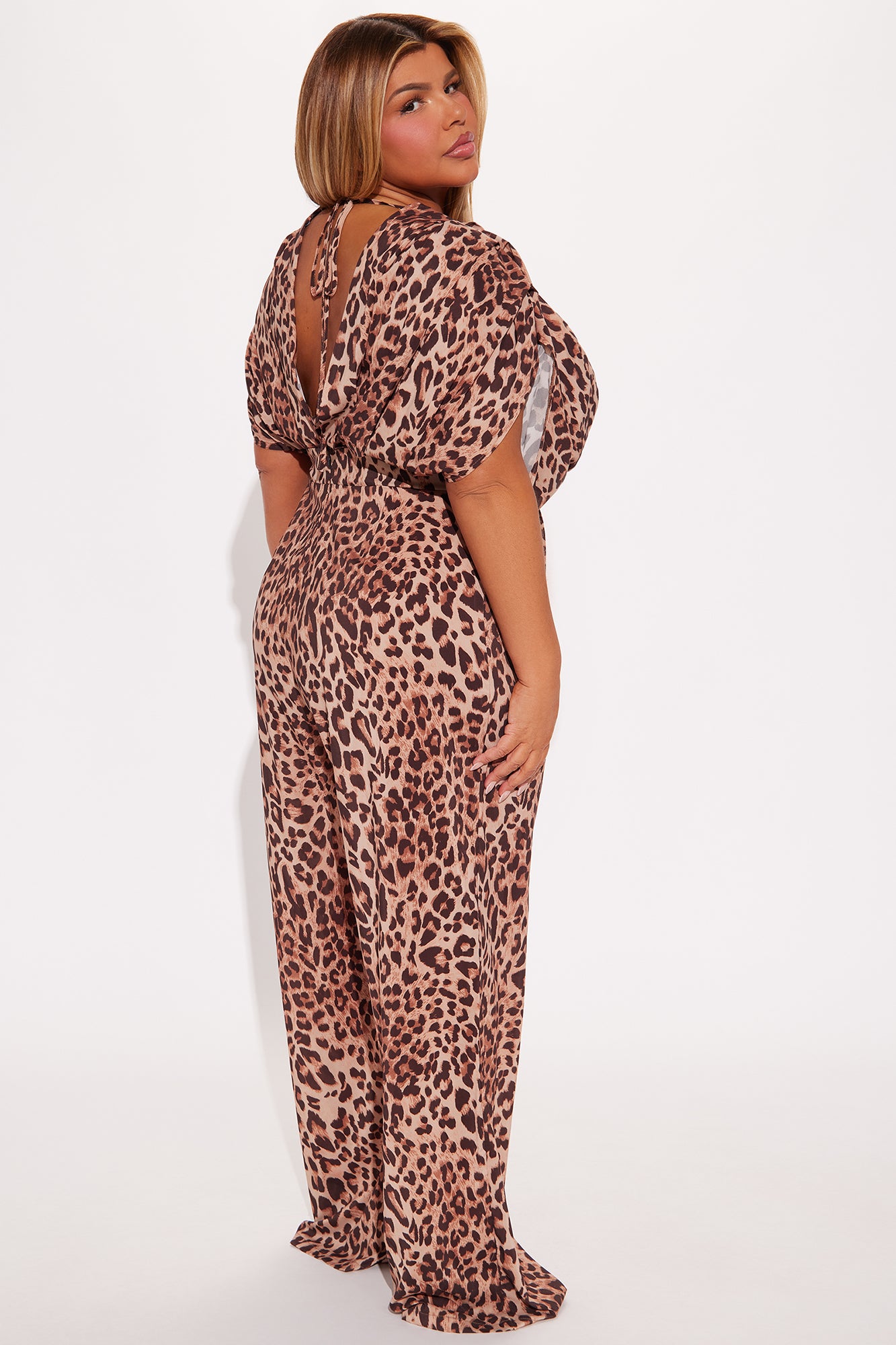 Available In Brown/combo. Jumspuit Sleeveless Pleated Detail Deep V-Neck Wide Leg Inseam = 33" Disclaimer: Print Placement Will Vary.? 95% Polyester 5% Elastane Imported |