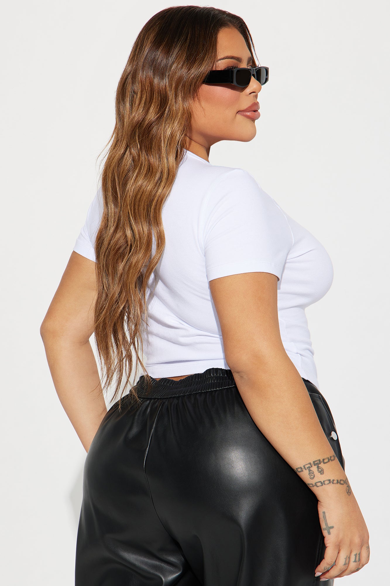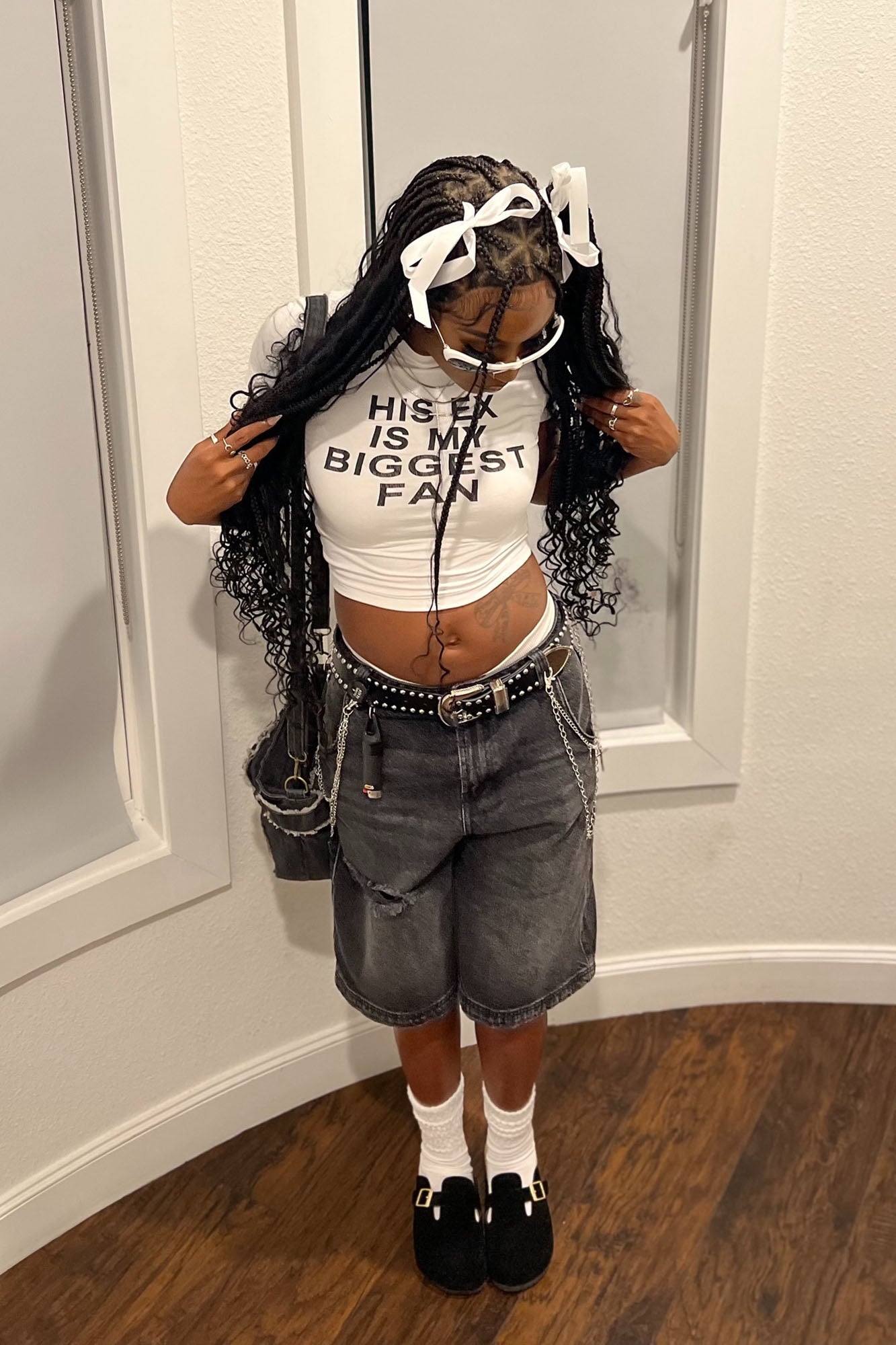 Add some fun to your wardrobe with this His Ex Is My Biggest Fan Tee in white. The crew neckline and short sleeves provide a comfy fit, while the playful text design adds a pop of personality. Made from soft cotton material, this crop top is perfect for any casual occasion. Grab yours today and show off your confident style! Available In White Crew Neck Short Sleeve Front Screen Stretch Disclaimer: Due To The Specialized Screen Printing Process A Difference In Saturation May Occur. Each Garment Is Unique. 96% Cotton 4% Spandex Imported |