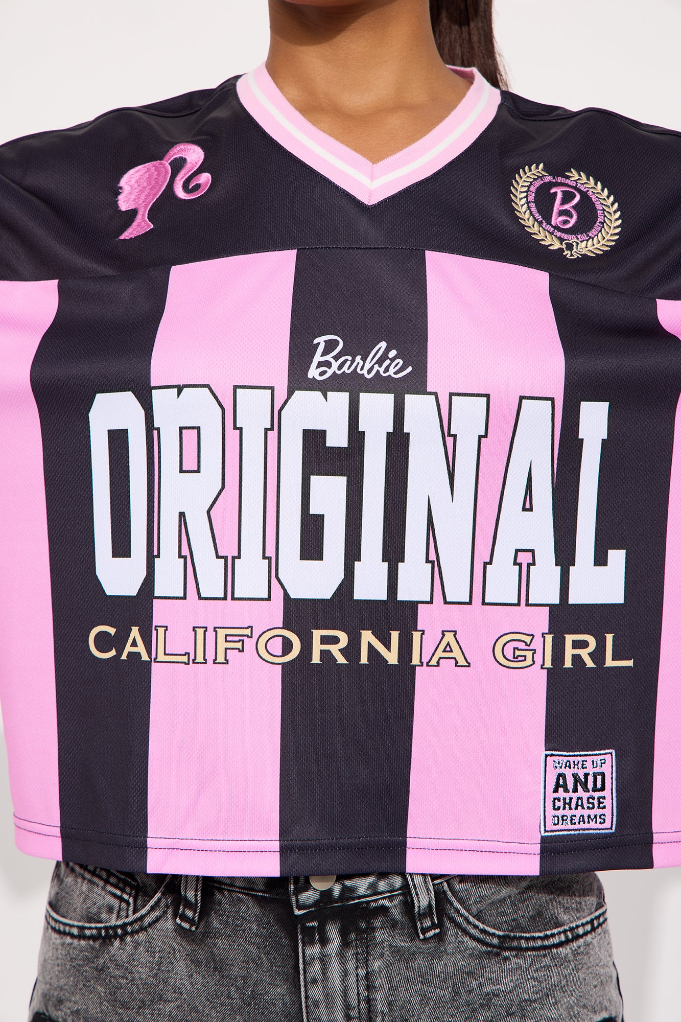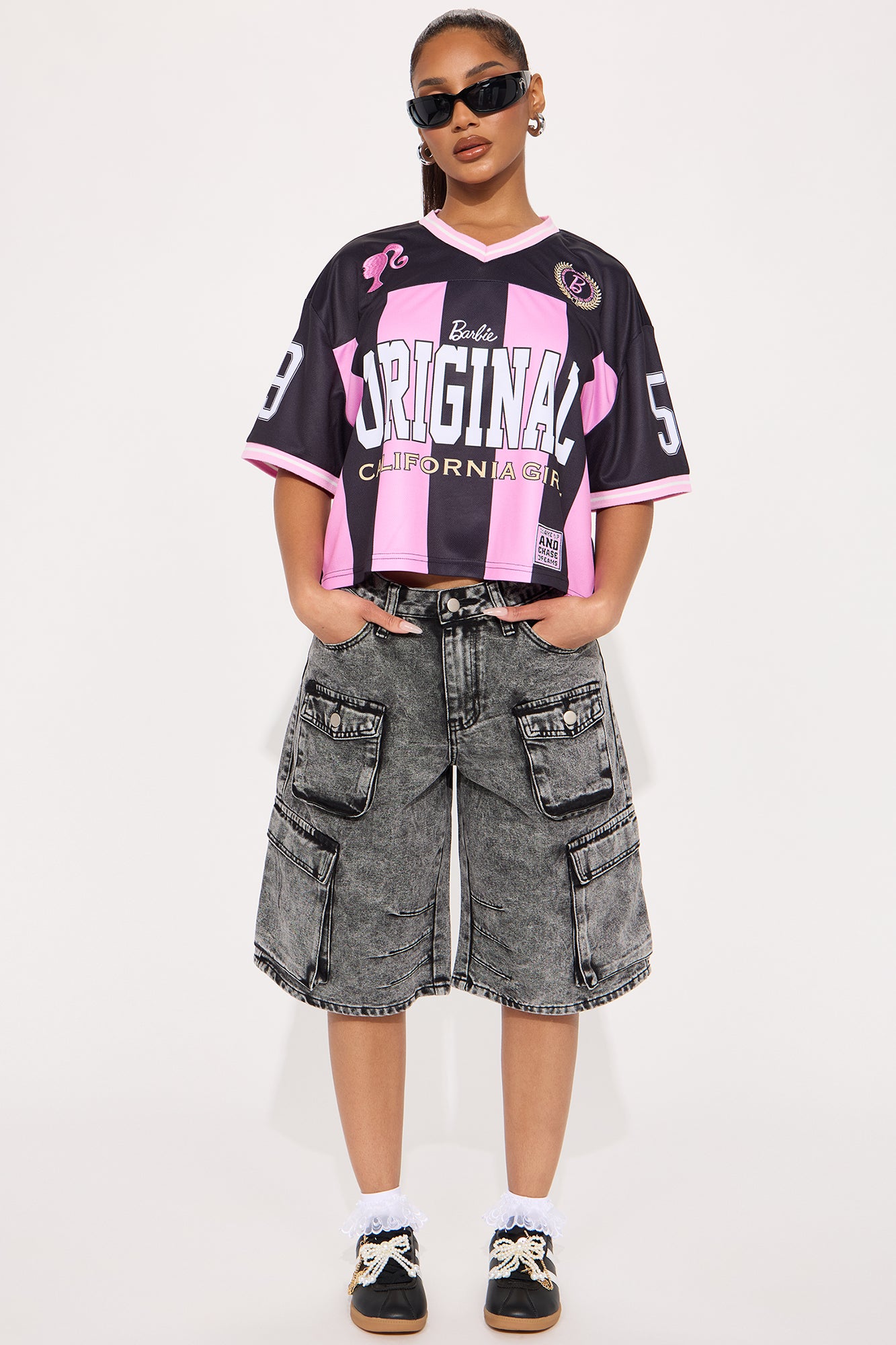 Available In Black/Pink. V-Neck Short Sleeve Front And Back Screen Patches Detail Stretch 100% Polyester Imported |