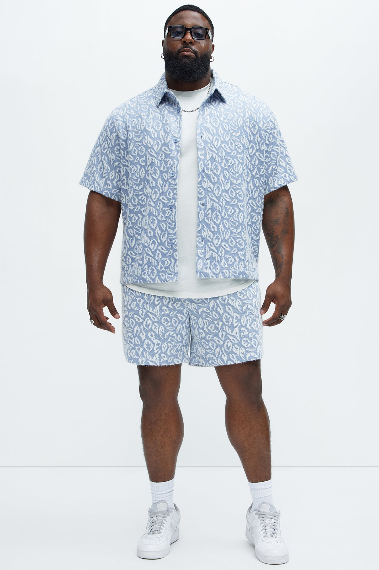 Available In Blue/combo. Fold Down Collar Front Button Closure Short Sleeves Pair With "Jacquard Foliage Shorts" Shell: 100% Polyester Imported |