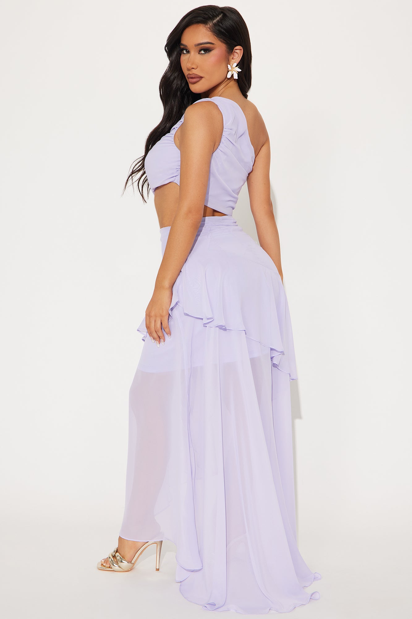 | Available In Lavender. Chiffon Maxi Dress One Shoulder Cut Out Ruffles Hidden Side Zipper Lined No Stretch Self: 100% Polyester Lining: 100% Polyester Imported |