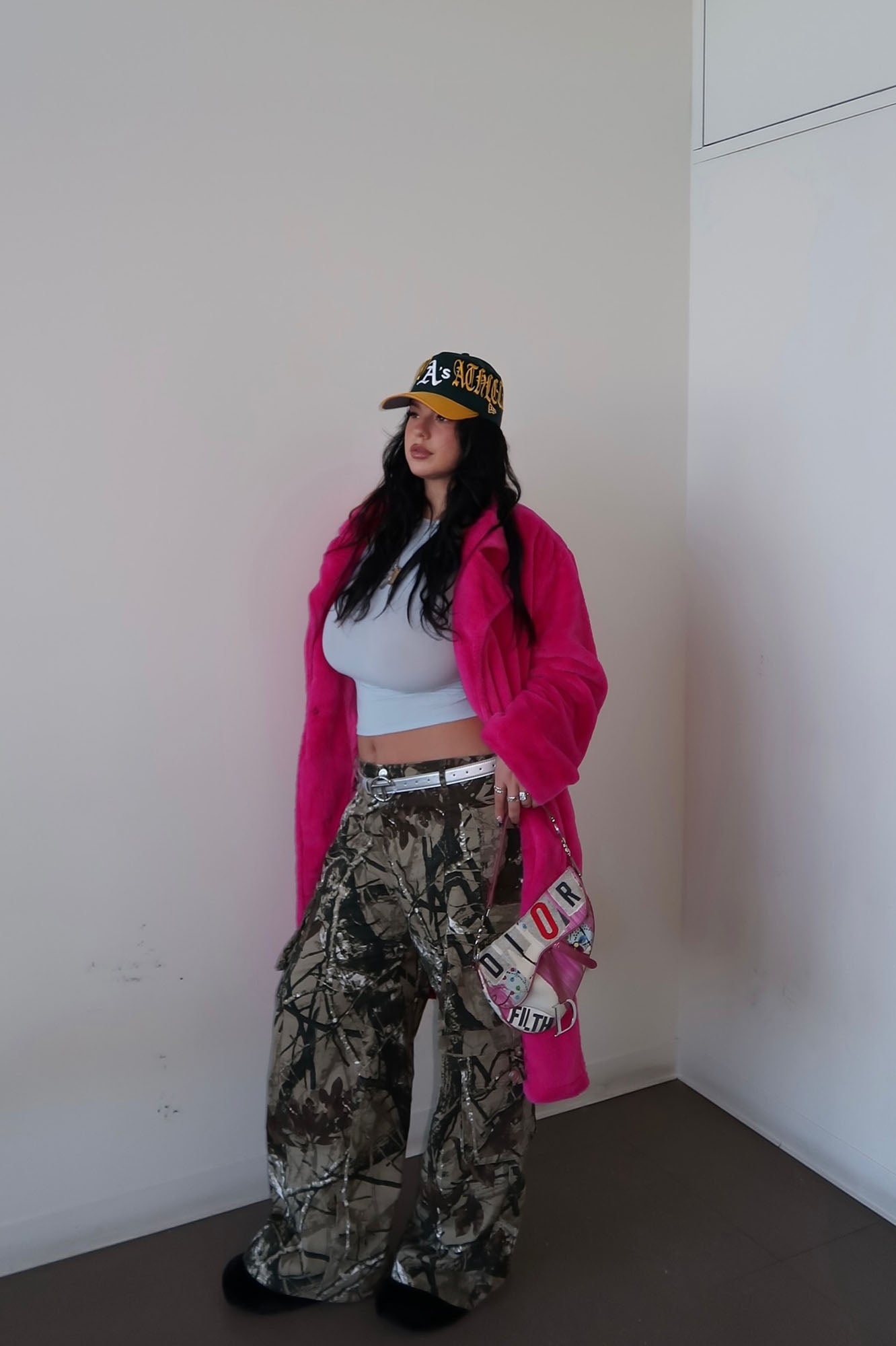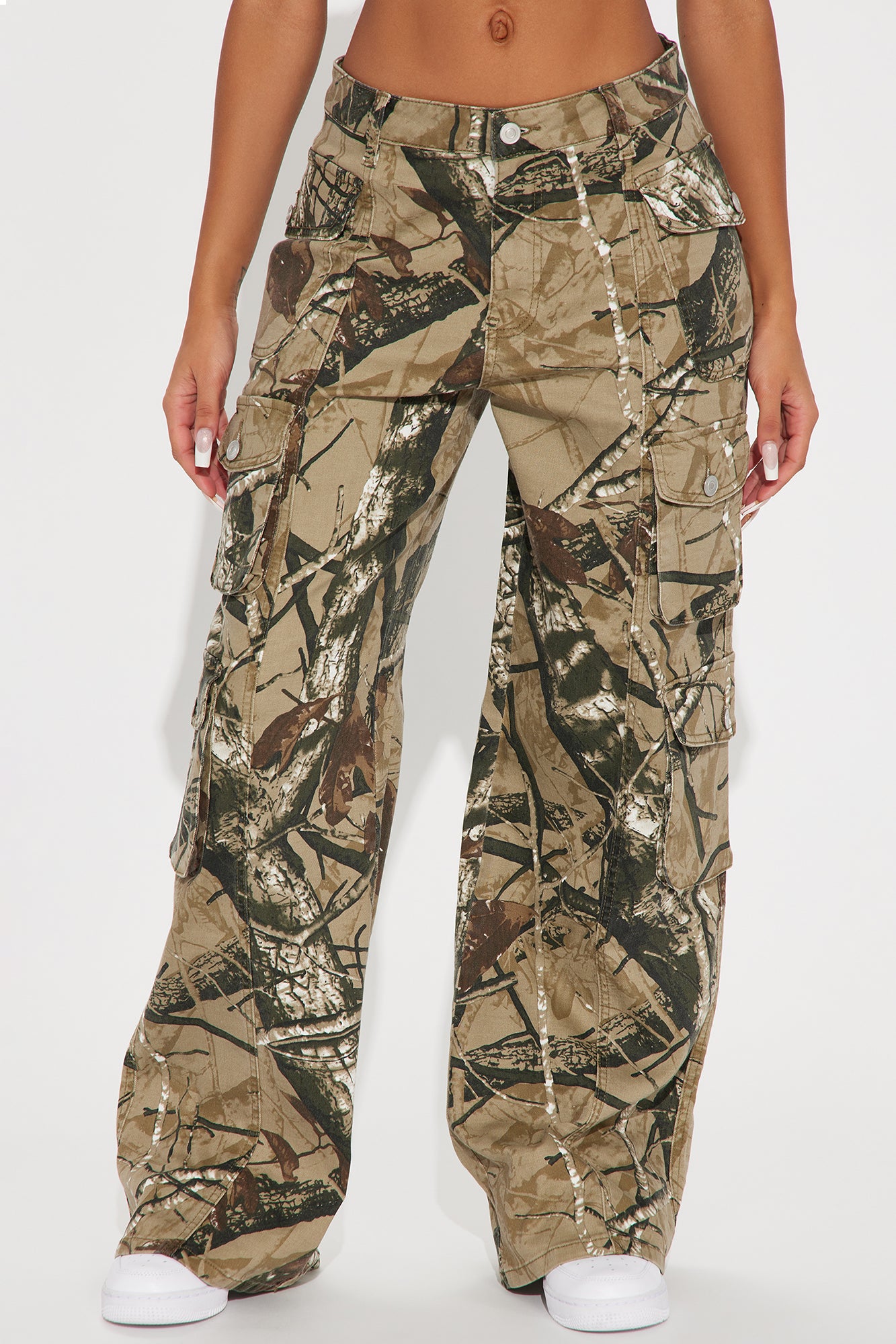 Available In Khaki/combo. Wide Leg Pant Mid Rise Button and Zip Closure Cargo Pockets Wide Leg Non Stretch Disclaimer: Due To The Specialized Wash And Printing Process, Each Garment Is Unique. Self: 98% Cotton 2% Spandex Imported |