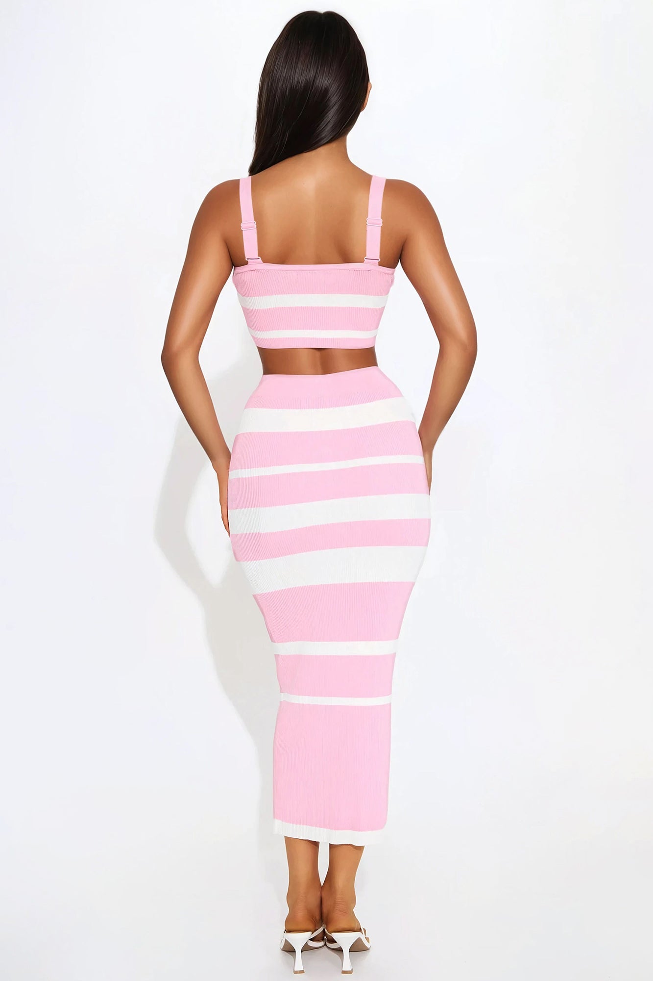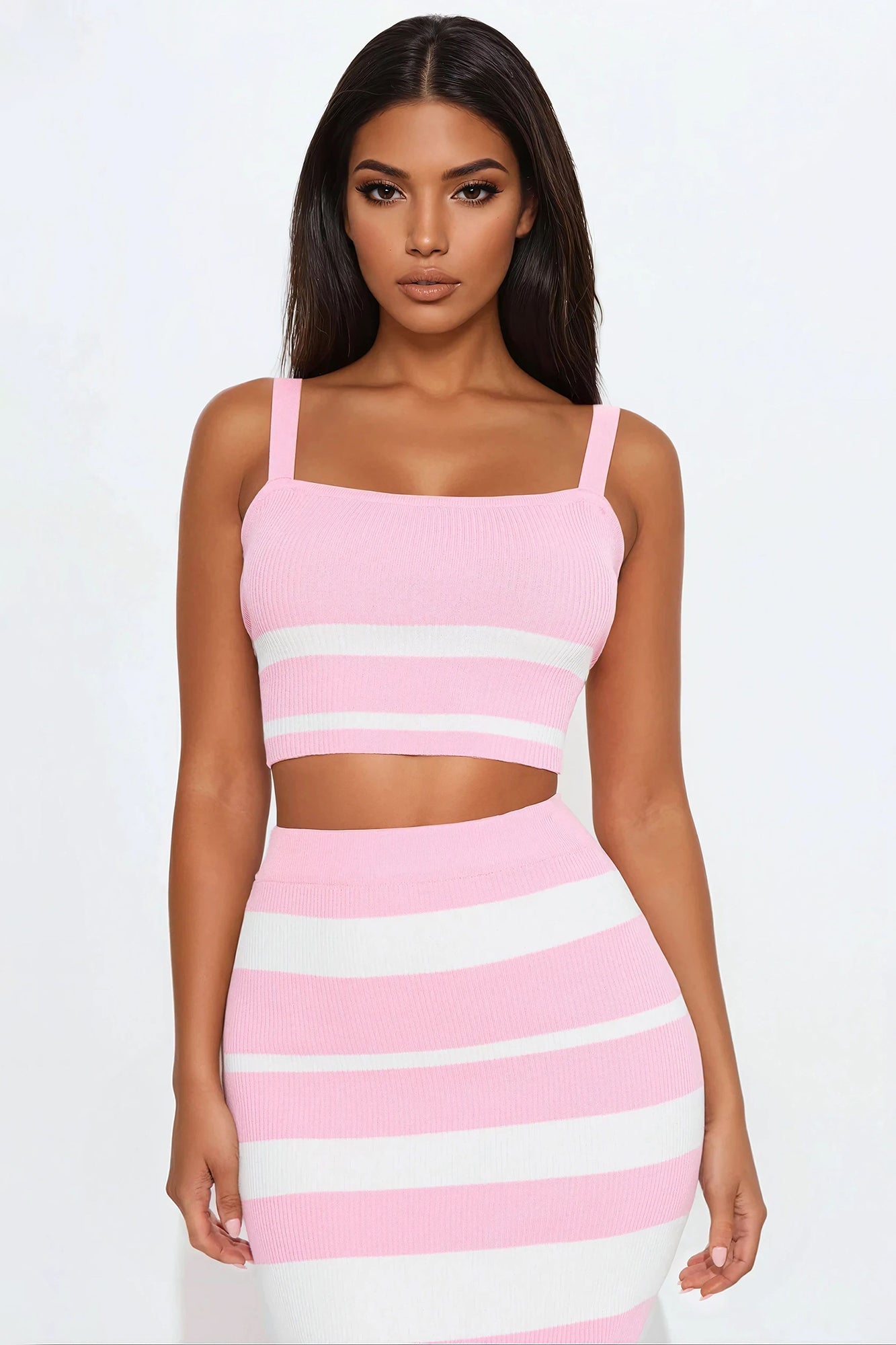 Available In Pink. Tank Top And Maxi Skirt Set Stretch Adjustable Straps Elastic Waistband 85% Viscose 15% Nylon Imported |