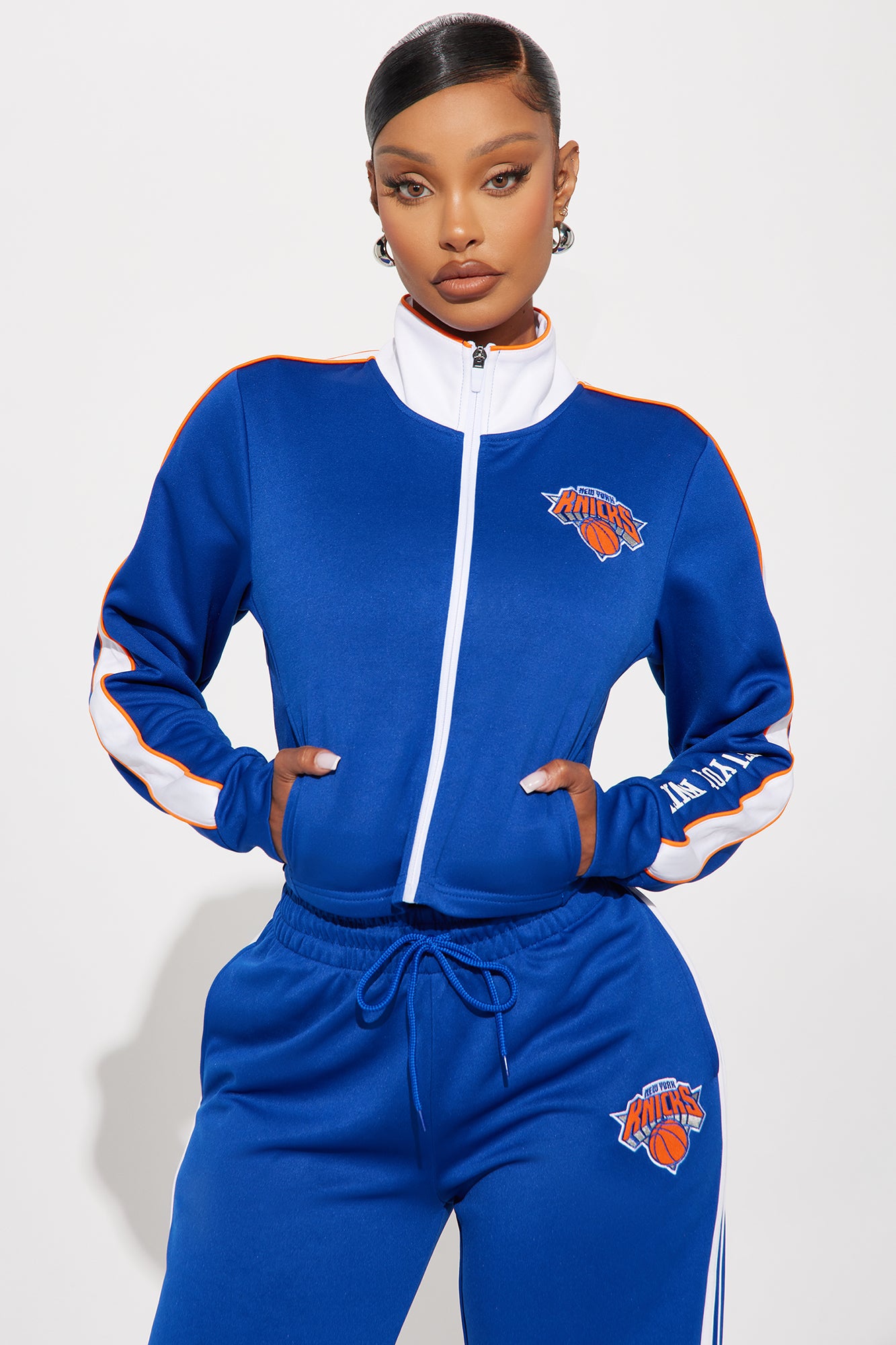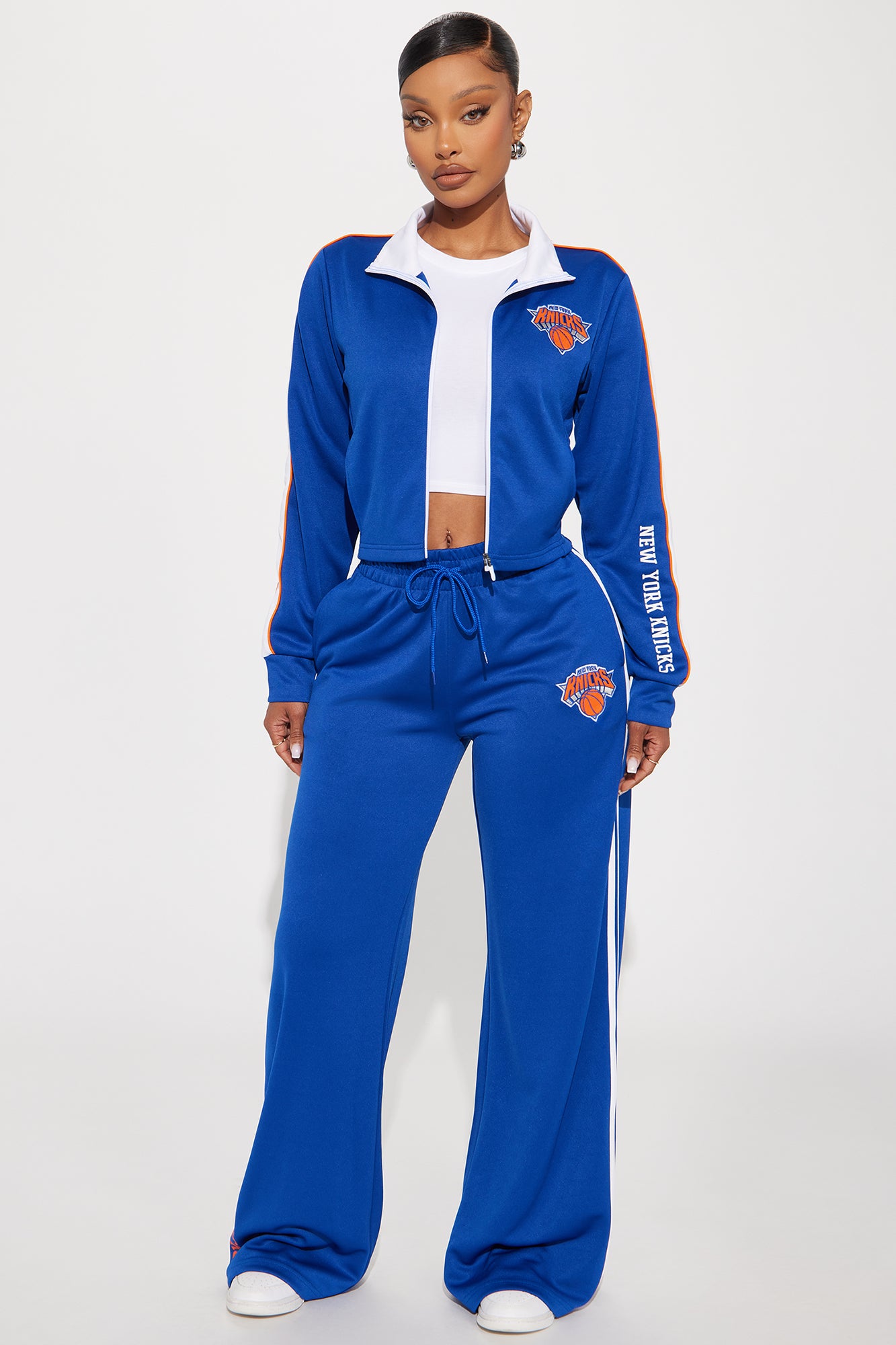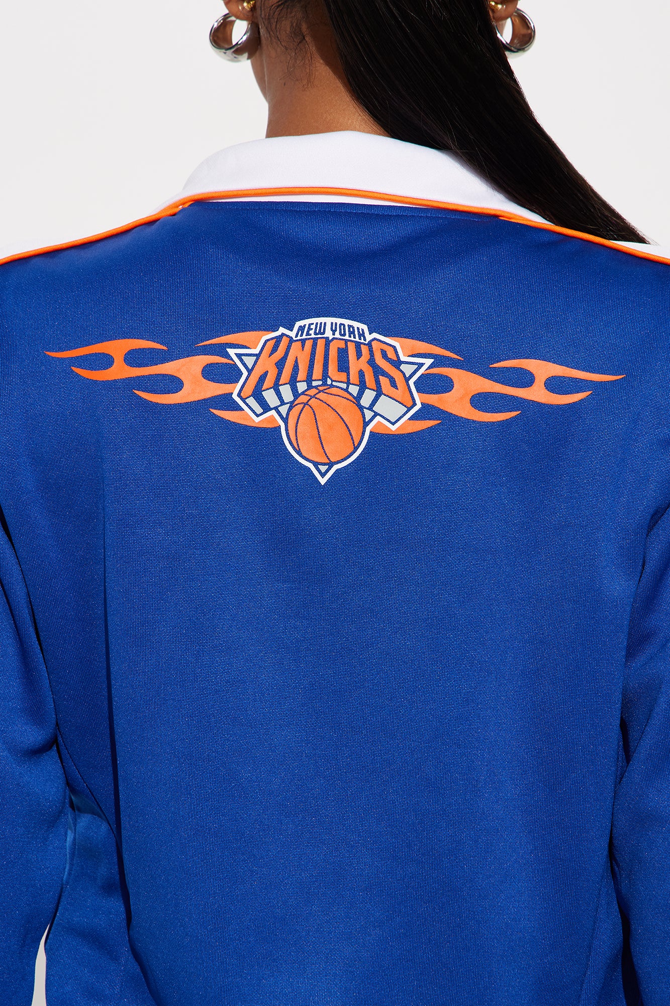Available In Blue. Sweatshirt Zip Up Mock Neck Long Sleeve Knicks Embroidery Graphic Sleeve, Back Screen Zipper Closure Stretch Pair Back To "Knicks Halftime Wide Leg Pant" Disclaimer: Due To The Screen Print & Embroidery Placement, Each Garment Is Unique. 100% Polyester Imported |