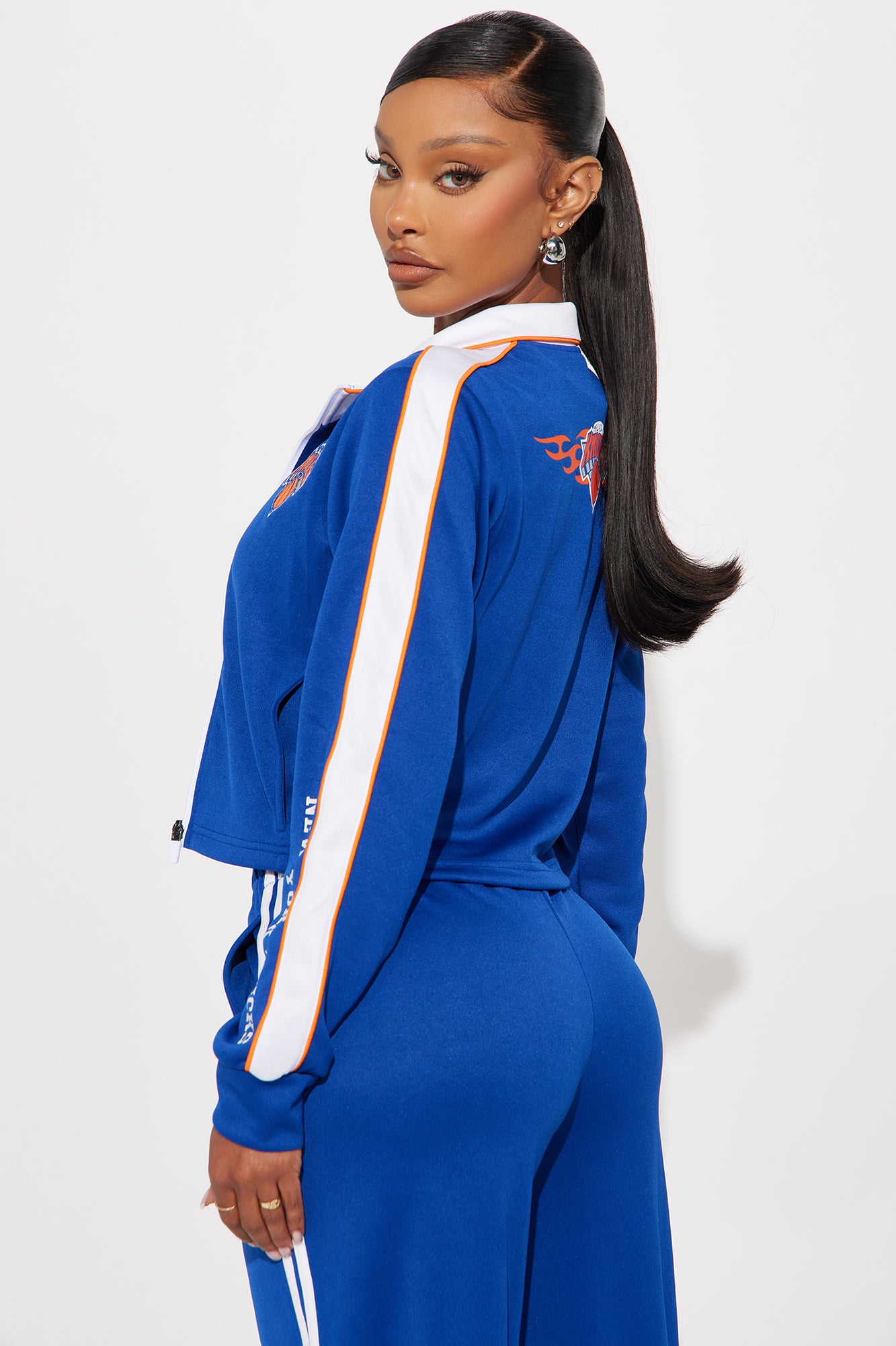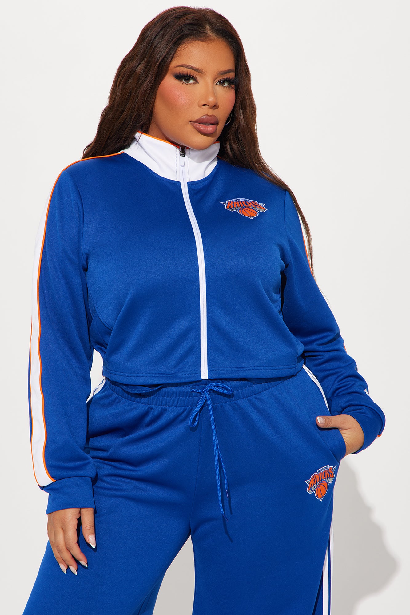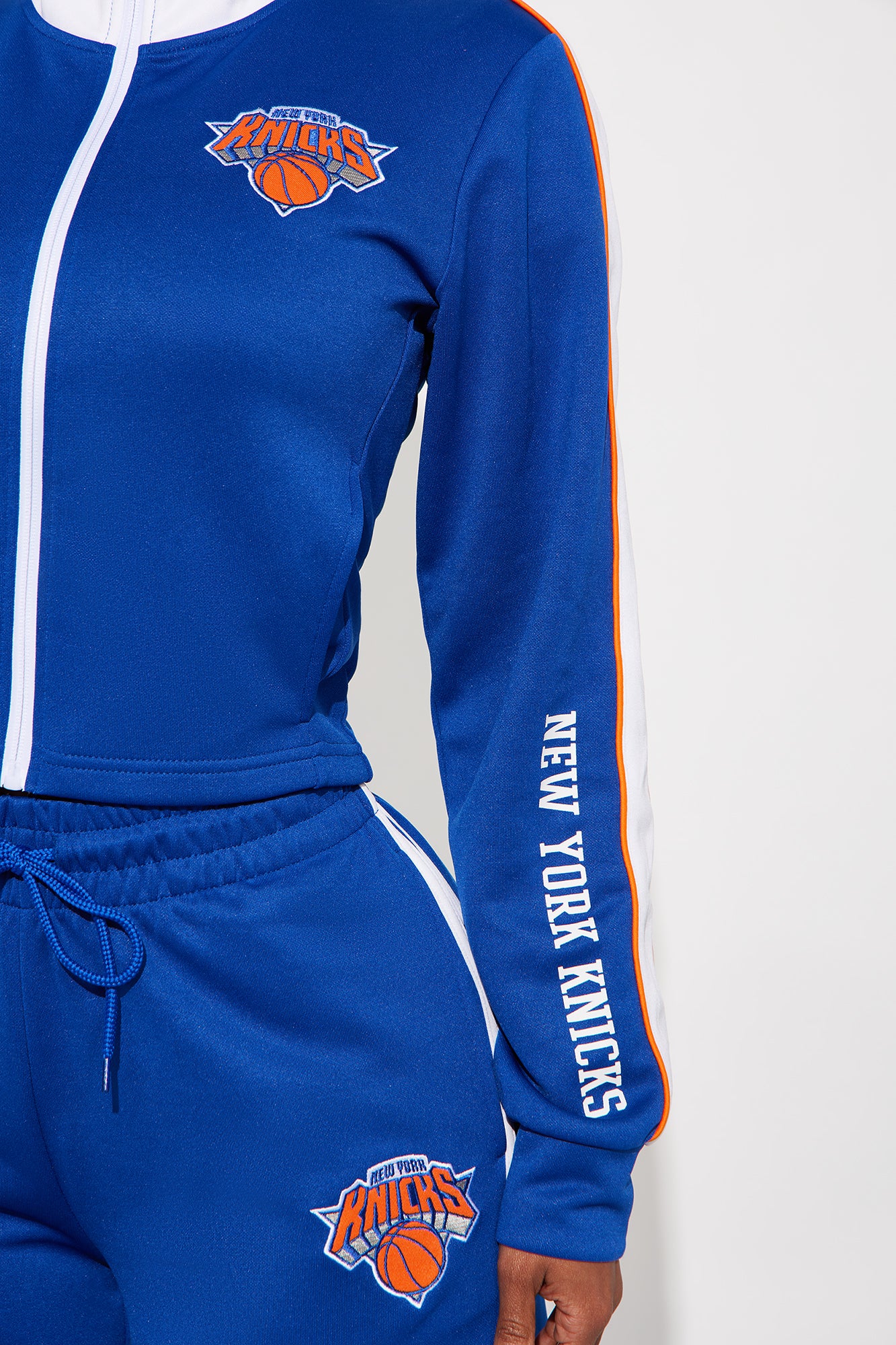 Available In Blue. Sweatshirt Zip Up Mock Neck Long Sleeve Knicks Embroidery Graphic Sleeve, Back Screen Zipper Closure Stretch Pair Back To "Knicks Halftime Wide Leg Pant" Disclaimer: Due To The Screen Print & Embroidery Placement, Each Garment Is Unique. 100% Polyester Imported |