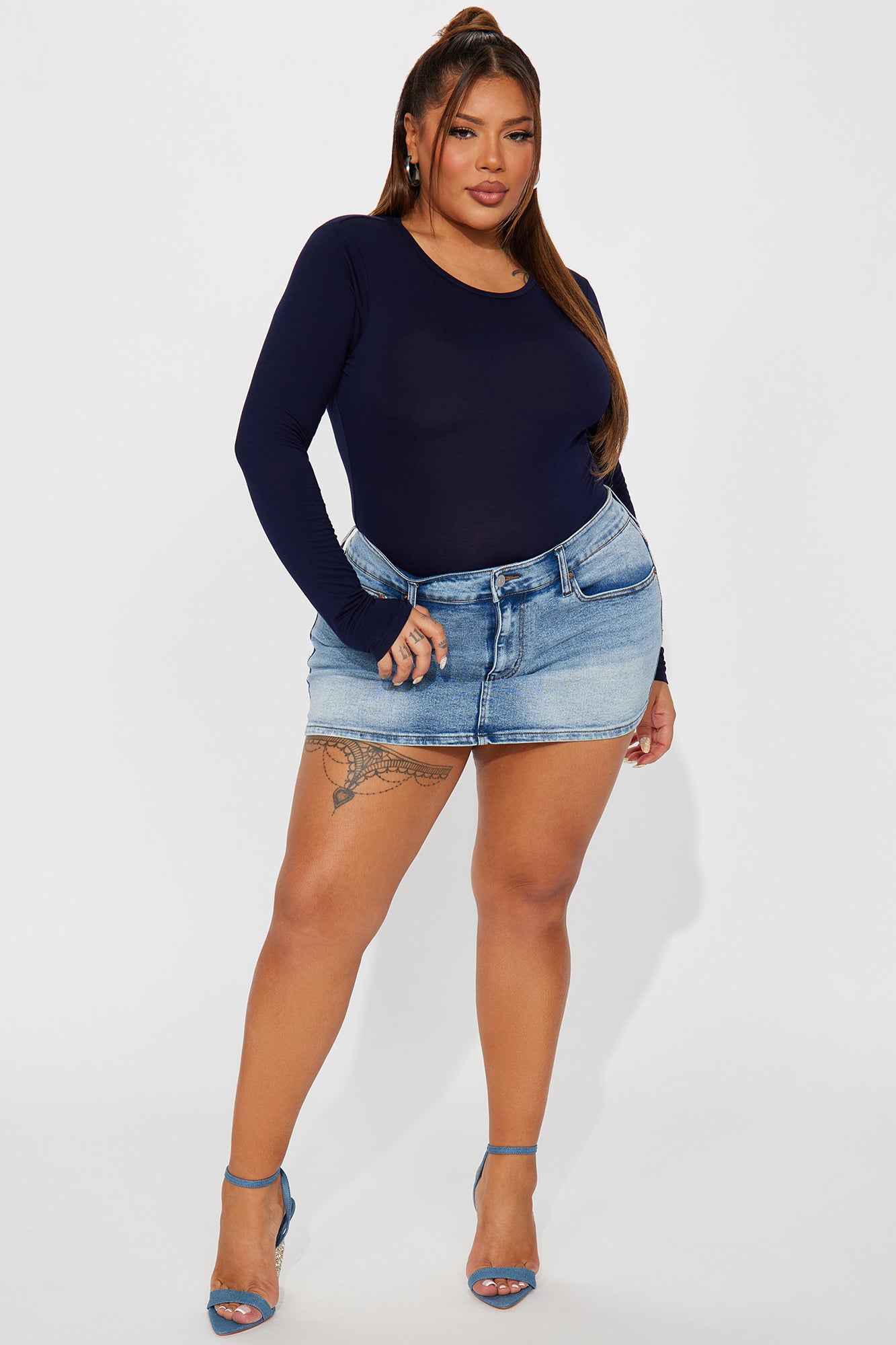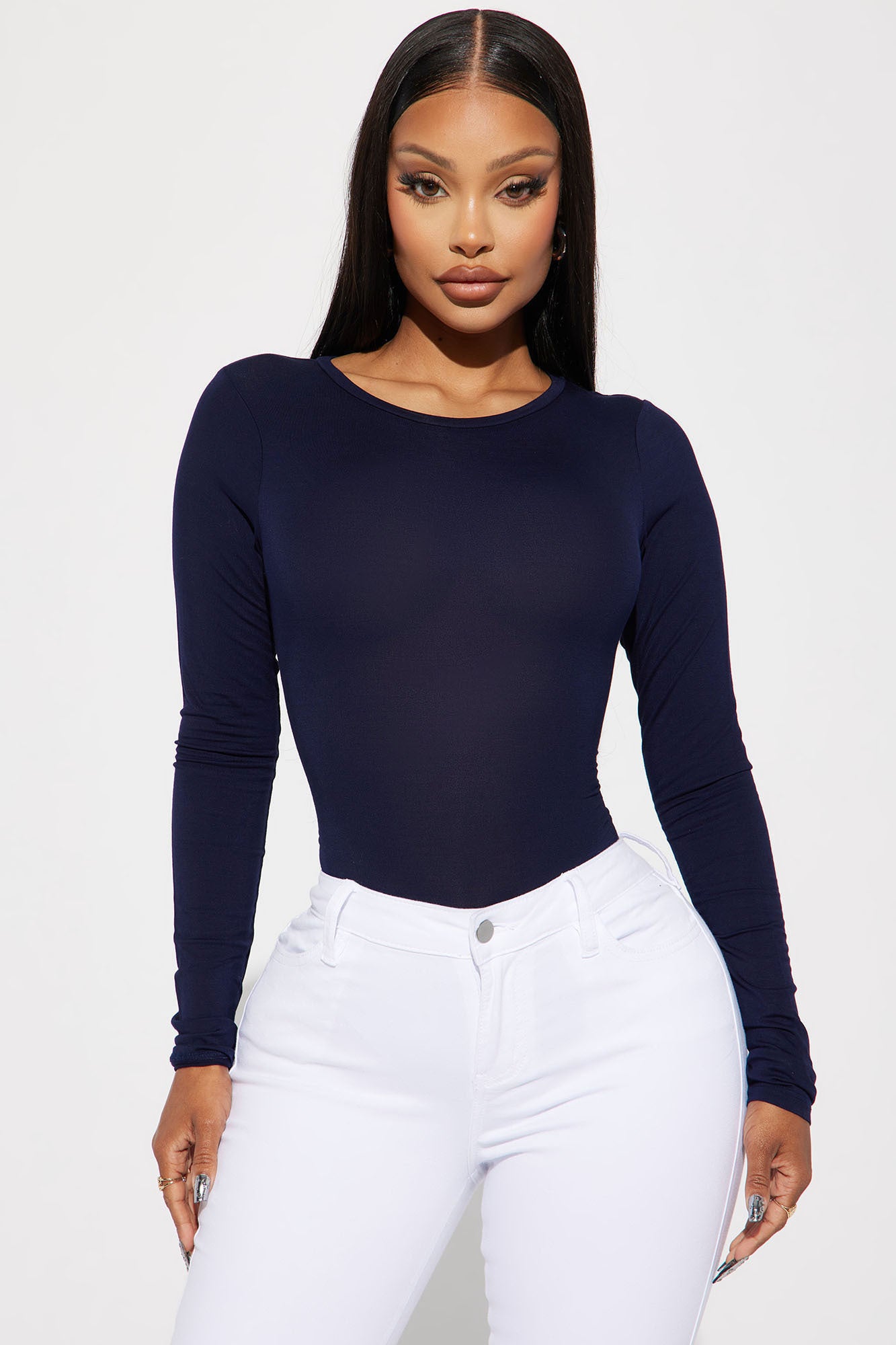 Available In Navy, Black, White, Burgundy, Rose, Mustard, Olive, Heather Grey, Charcoal, And Light Blue Bodysuits Long Sleeve Crew Neckline Final Sale 95% Rayon 5% Spandex Imported |