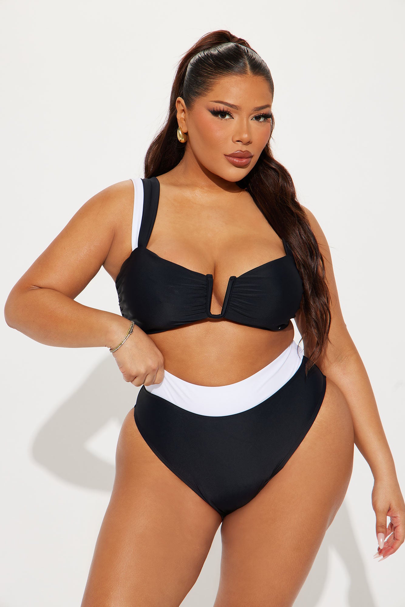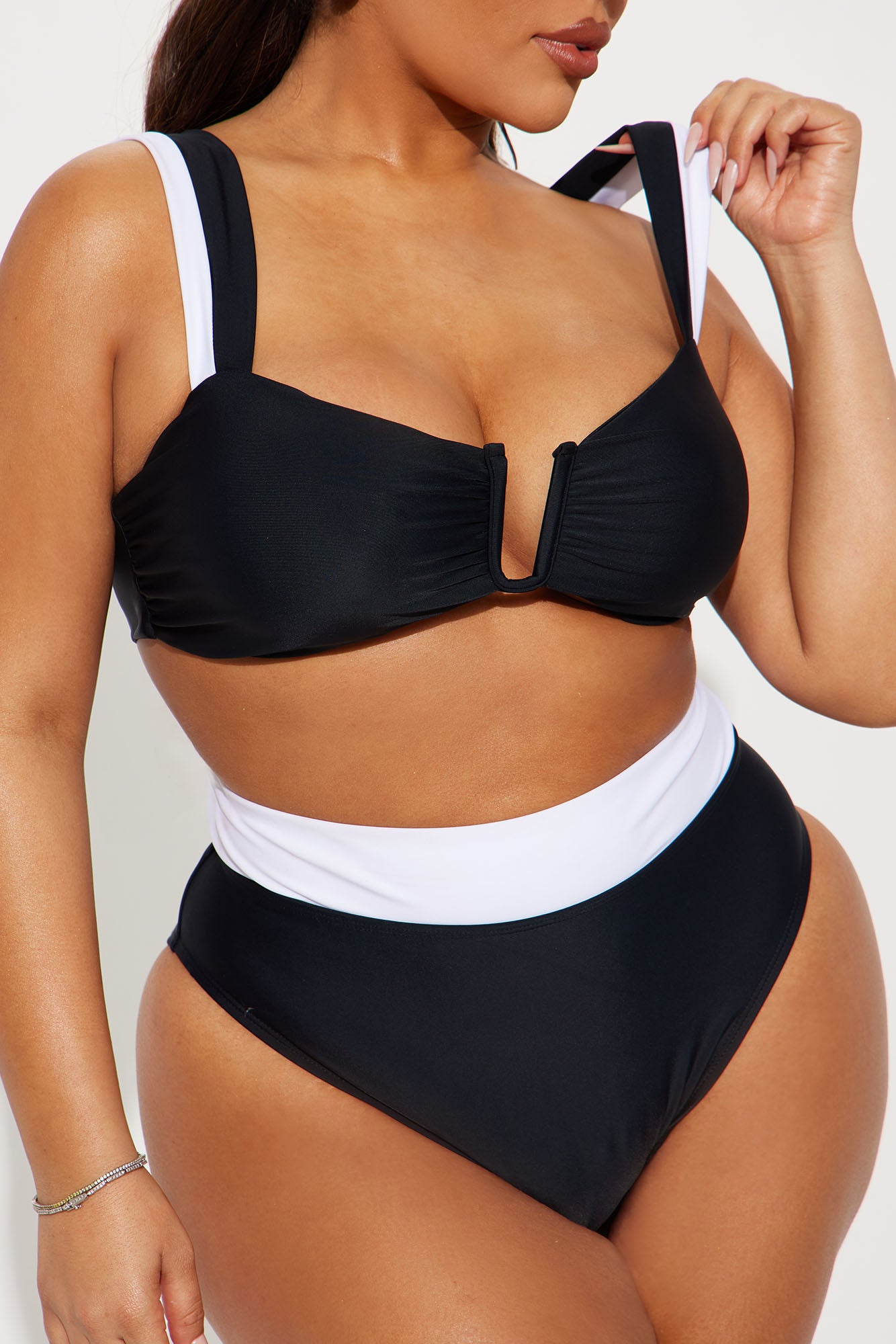 Available In Black/White. 2 Piece Bikini Bralette Bikini Top Removable Cups U Wire Contrast Trim High Waist Bikini Bottom Cheeky Full Stretch Final Sale Shell: 80% Nylon 20% Spandex Lining: 90% Polyester 10% Spandex Imported |