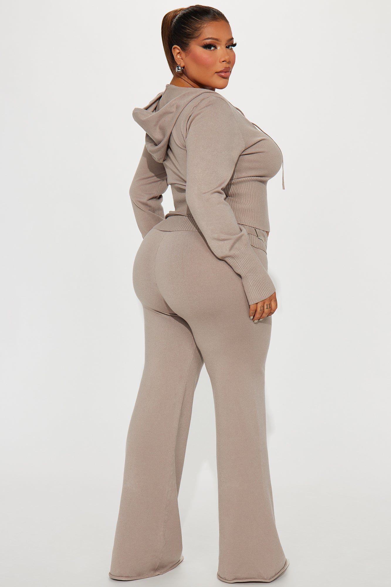 Available In Oatmeal And Charcoal. Sweater Pant Set Hoodie Zipper Closure Straight Leg Pant Fold over Waist Detail Elastic Waistband Stretch 50% Viscose 30% Polyester 20% Nylon Imported |