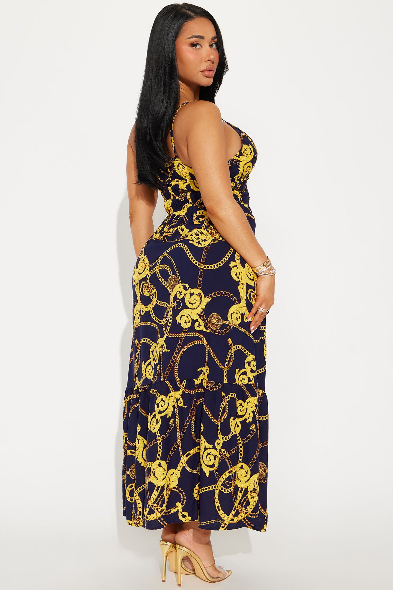 Available In White/Gold, Green/combo, Orange/combo, And Navy/combo. Maxi Dress Adjustable Spaghetti Straps Padded Bra Cups Tie Front Tiered Smocking Tiered Flowy Non Stretch Disclaimer: Print Placement May Vary 100% Rayon Imported |