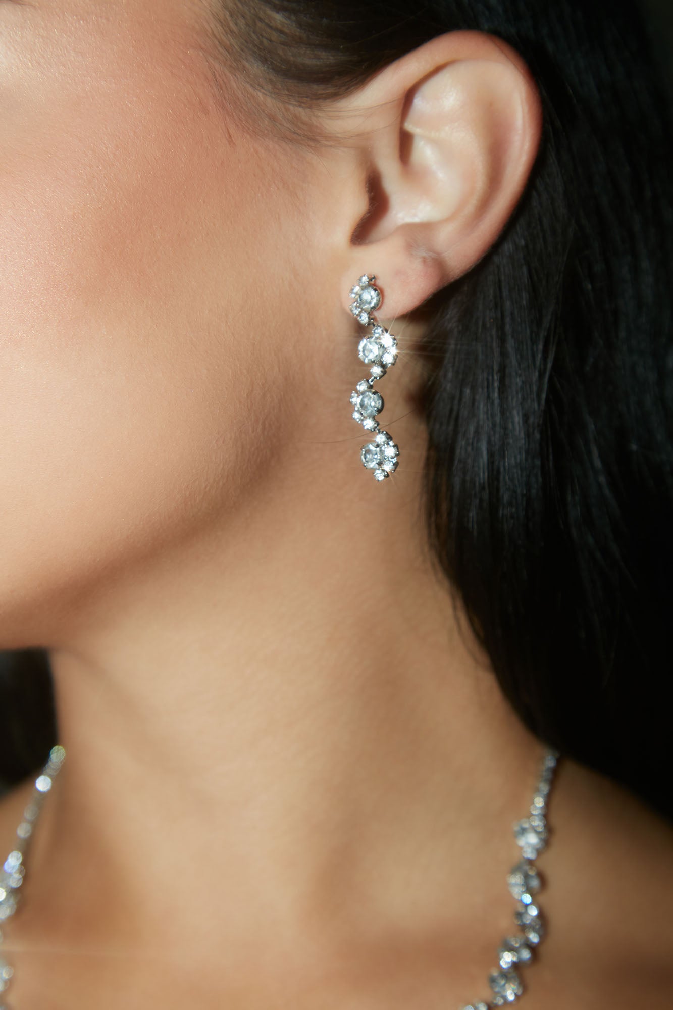 Available In Silver And Blue. Necklace And Earring Set 3 Piece Set Drop Earrings Intricate Design Rhinestone Detail Lobster Clasp Closure Post Back Closure Final Sale Imported |