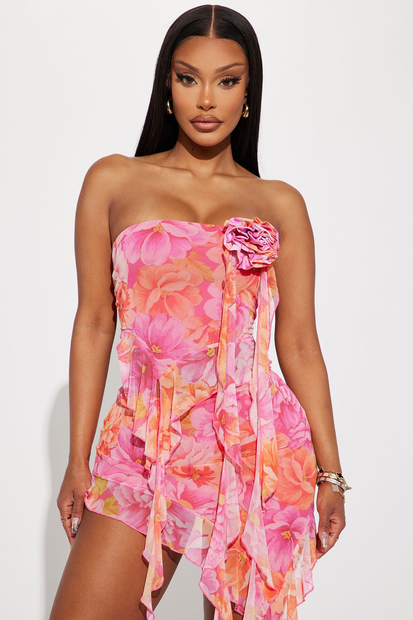 | Available In Pink/combo. Skirt Set Strapless Top Fully Lined Floral Applique Mini Skirt Ruffles Lined Asymmetrical Hem Stretch Disclaimer: Print Placement May Vary Shell: 95% Polyester 5% Spandex Lining: 100% Polyester Imported |