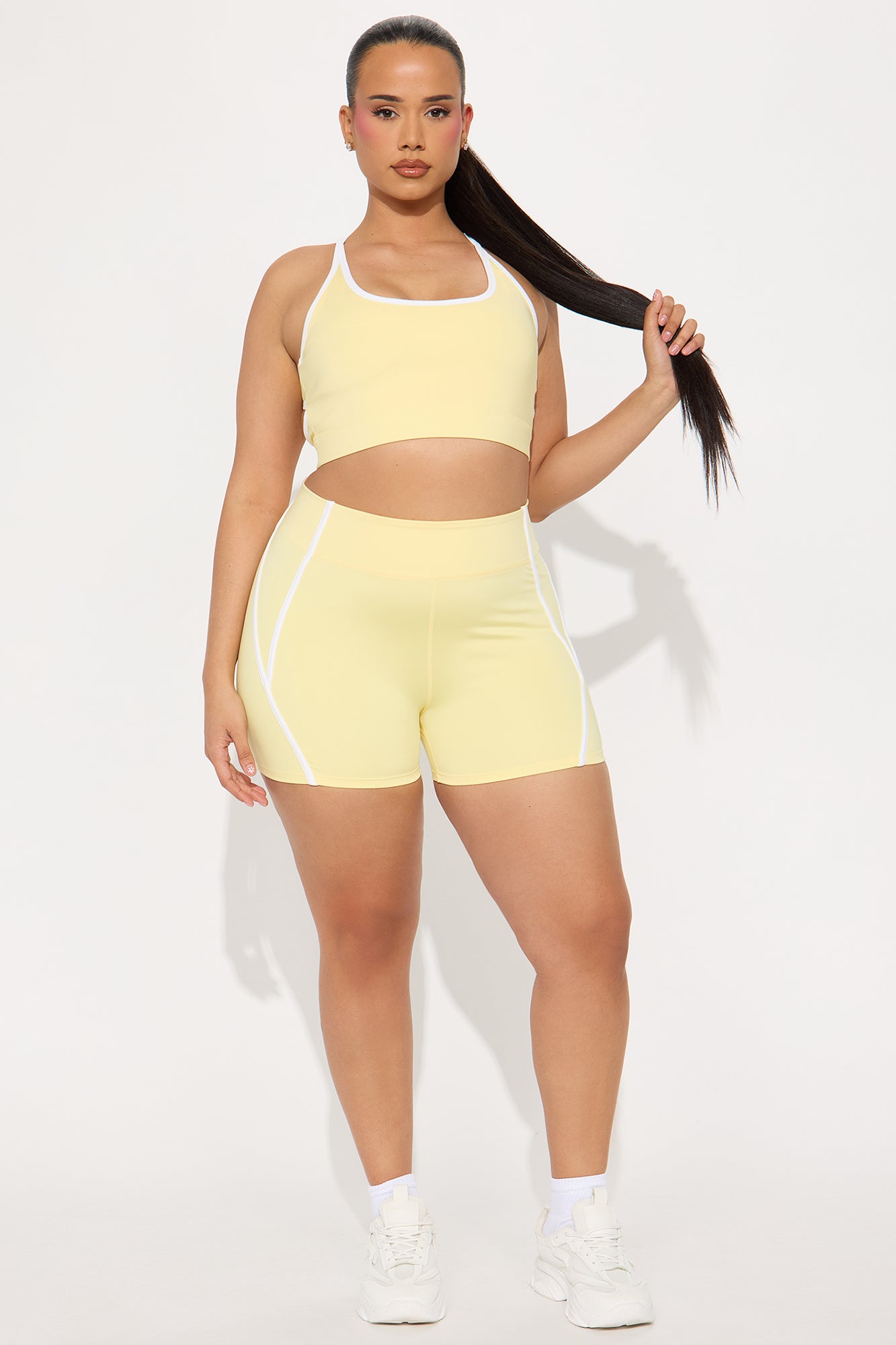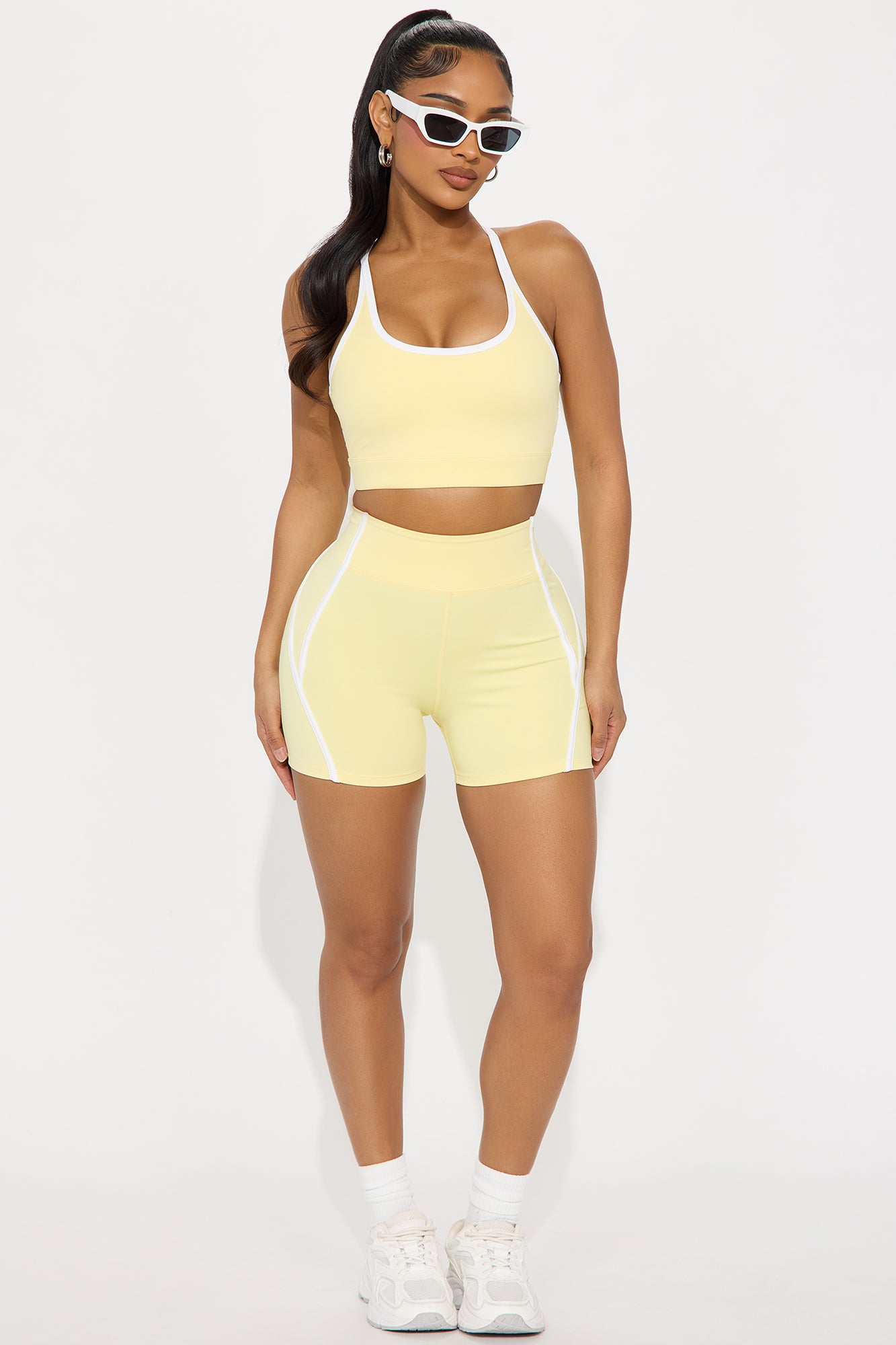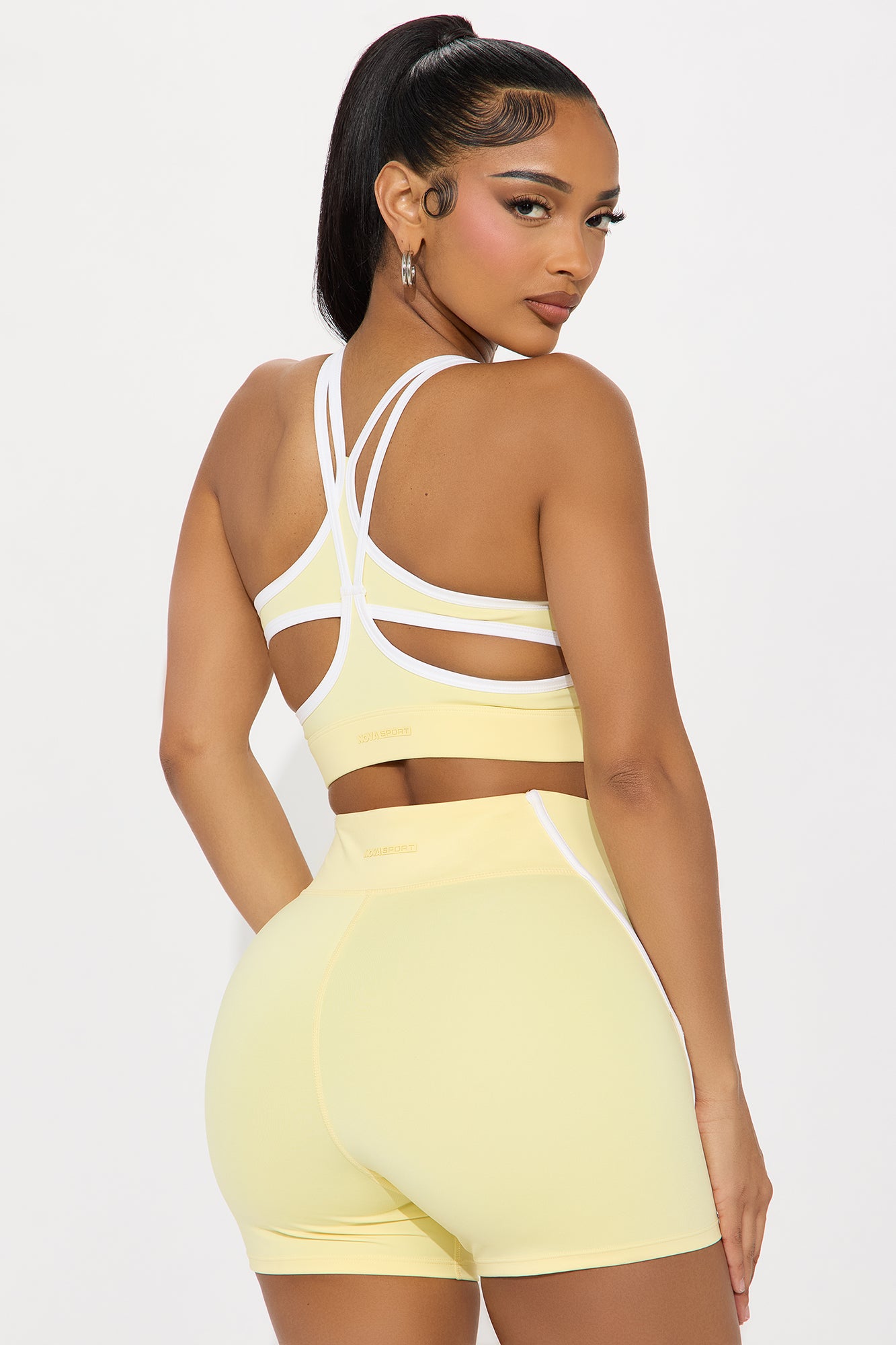 Available In Black And Butter Yellow. Sports Bra Scoop Neck Sleeveless Elevate Cut Out Detail Contrast Trim High Impact Stretch Pair With "Match Maker Elevate Biker Short" Shell: 73% Polyester 27% Spandex Mesh: 82% Nylon 18% Spandex Imported  |